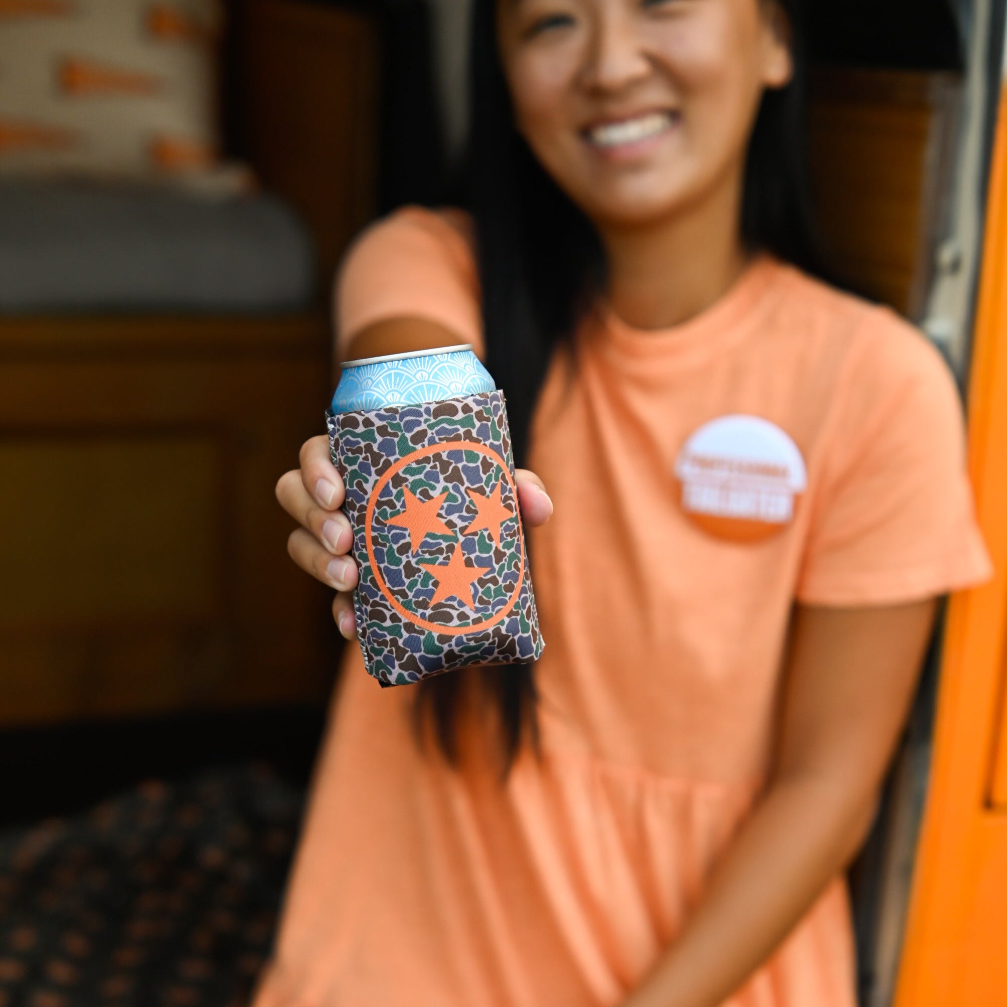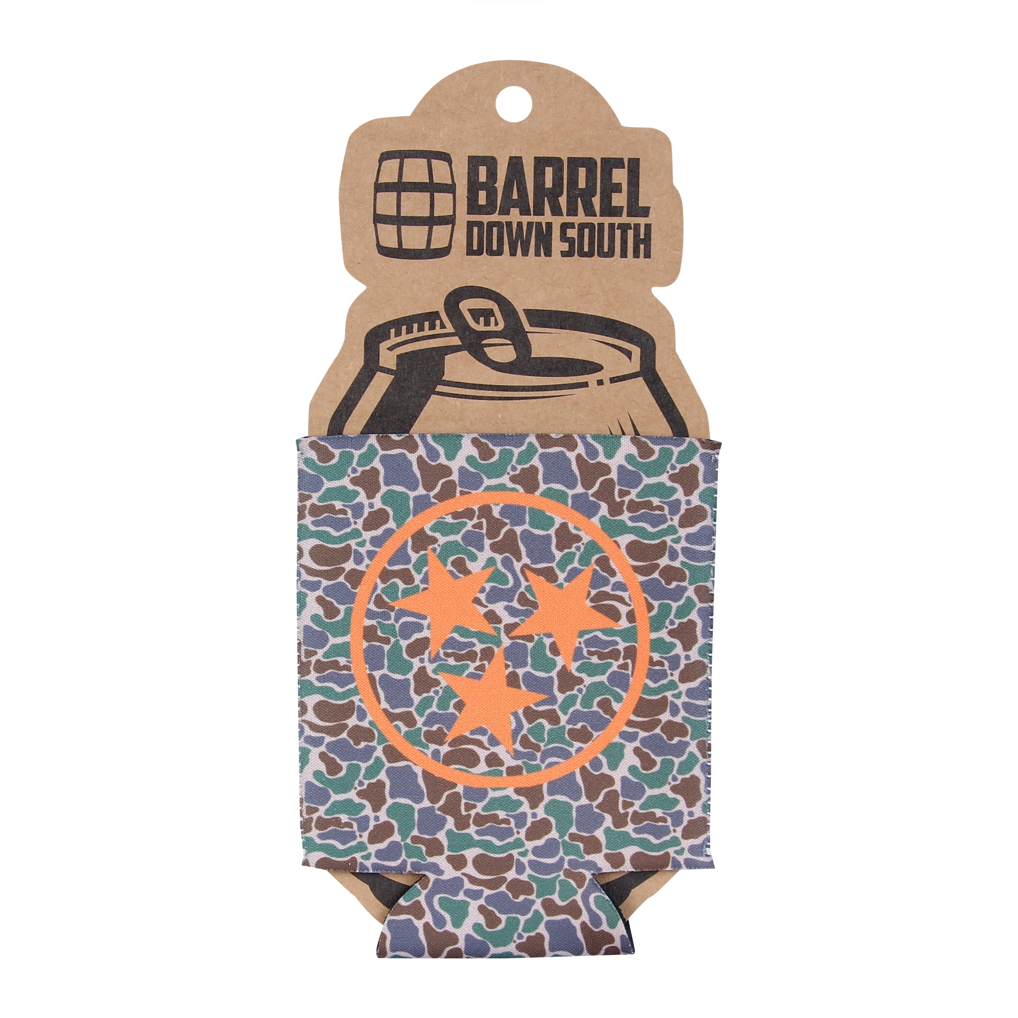 Keep your drink cool and your style cooler with the Camo Tri Star Can Cooler. Its fun camo design adds a playful twist to your beverage game while insulating your can to keep it refreshingly cold. Perfect for outdoor adventures or backyard hangouts, this cooler combines function and flair in one handy accessory.
