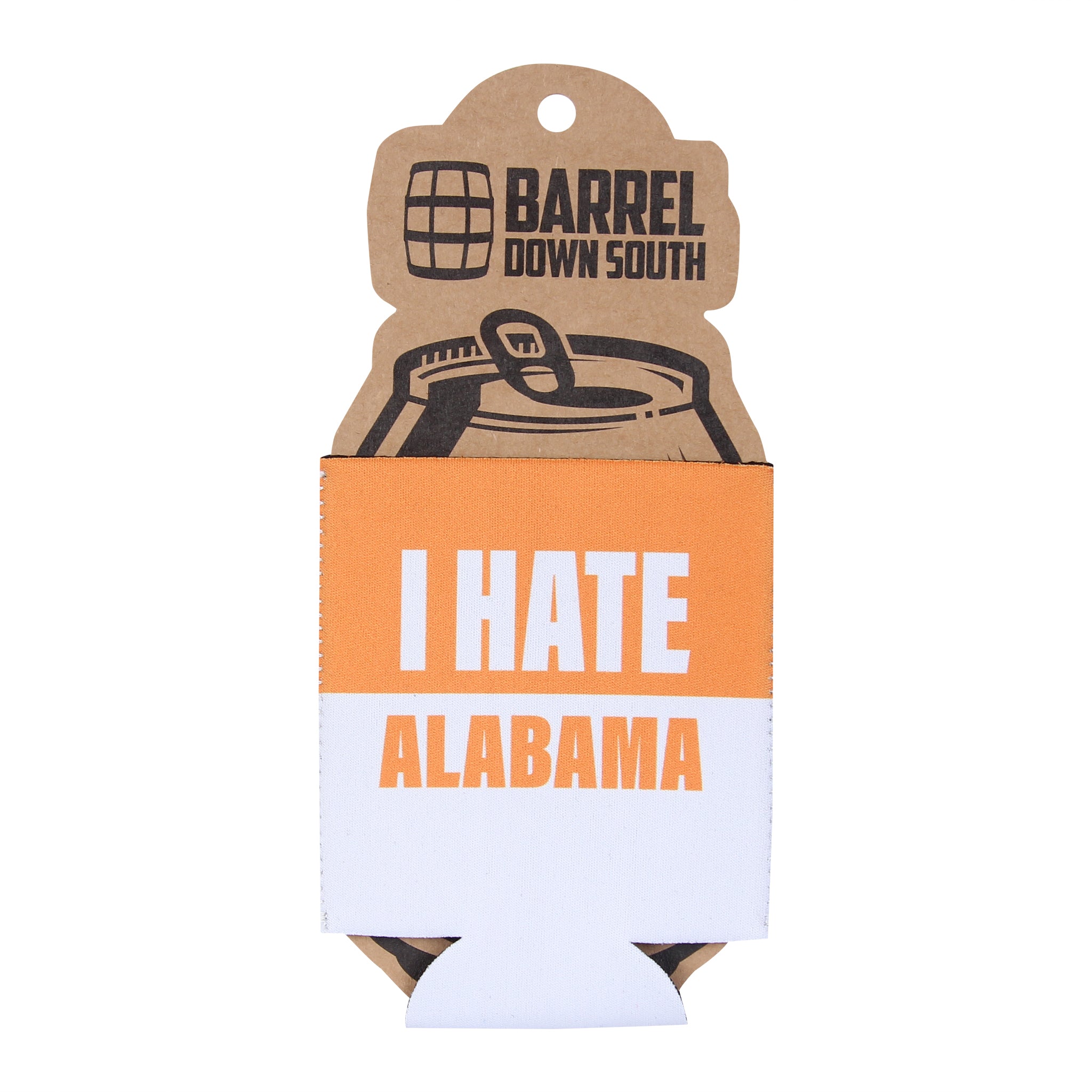 Keep your drink cool and your rivalry clear with this Orange and White "I Hate Alabama" Can Cooler. Perfect for game days or tailgates, it fits standard cans snugly while showing off your playful team spirit. Stay refreshed and make a bold statement wherever you go!