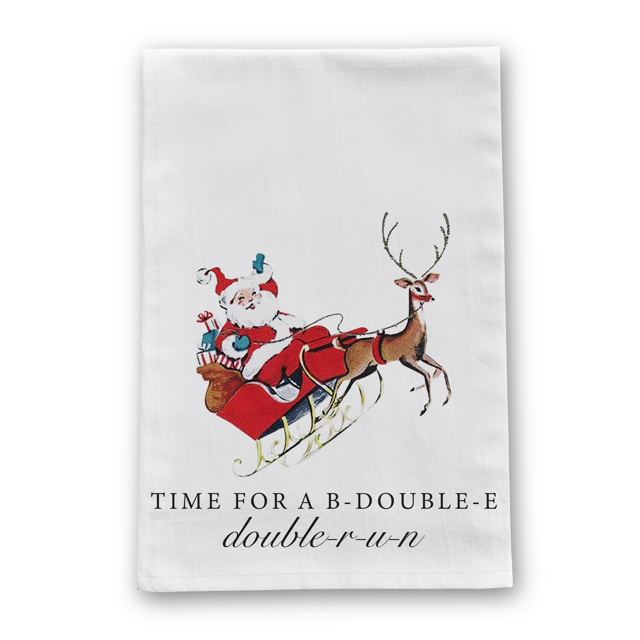 Get a laugh this holiday season with this cheeky Beer Run Tea Towel featuring Santa and his sleigh with the hilarious caption "Time for a beer run." Perfect for the adult who appreciates holiday humor with a twist, this festive design brings irreverent fun to your kitchen. The quality fabric makes it practical for everyday use while the witty illustration keeps things entertaining. Whether you're wrapping it as a gag gift or keeping it for yourself, this towel proves that holiday spirit comes in many flavors!