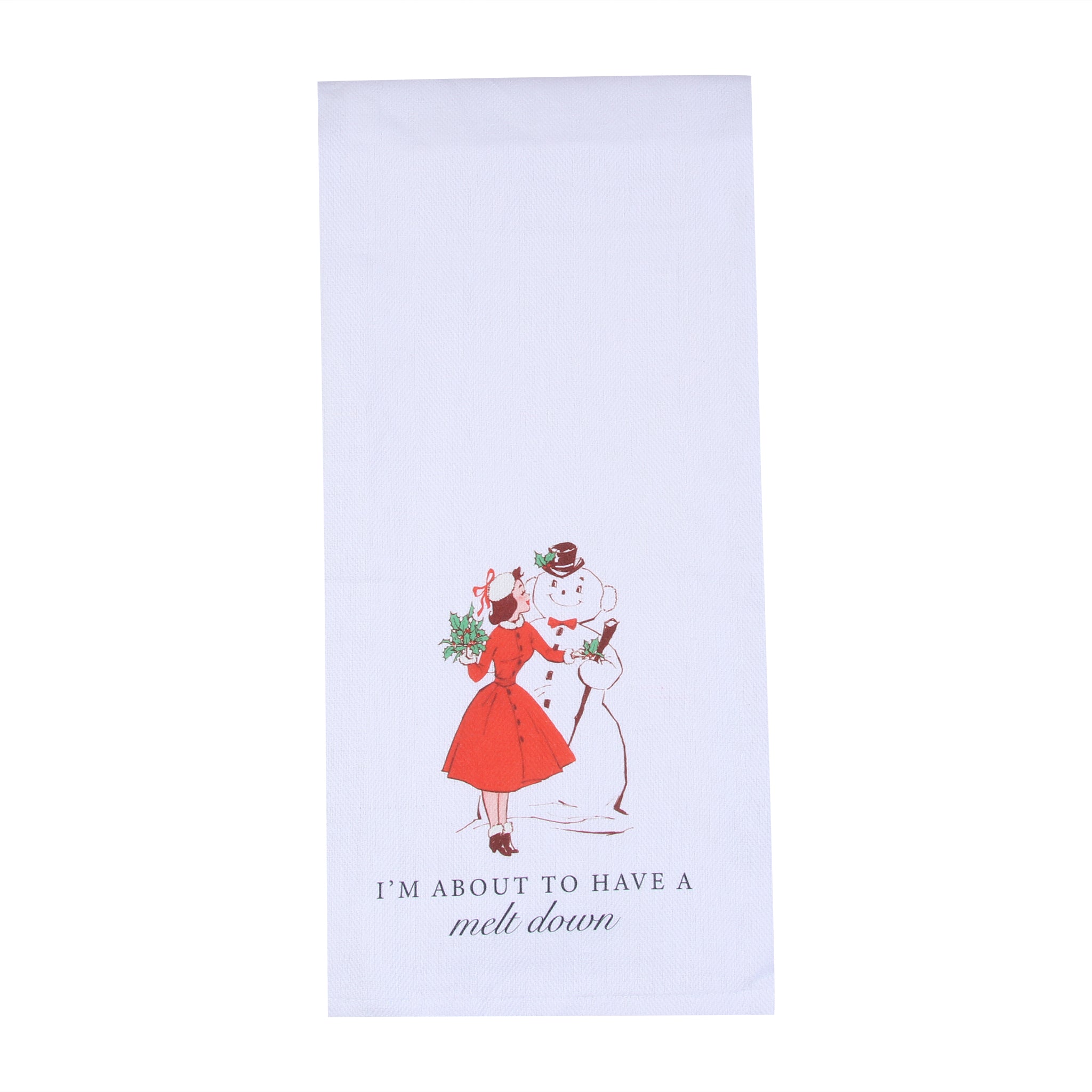 Bring humor and winter charm to your kitchen with the Meltdown Tea Towel. Featuring a whimsical illustration of a woman building a snowman alongside cheeky text, this tea towel is perfect for those who appreciate a playful twist on the chilly season.