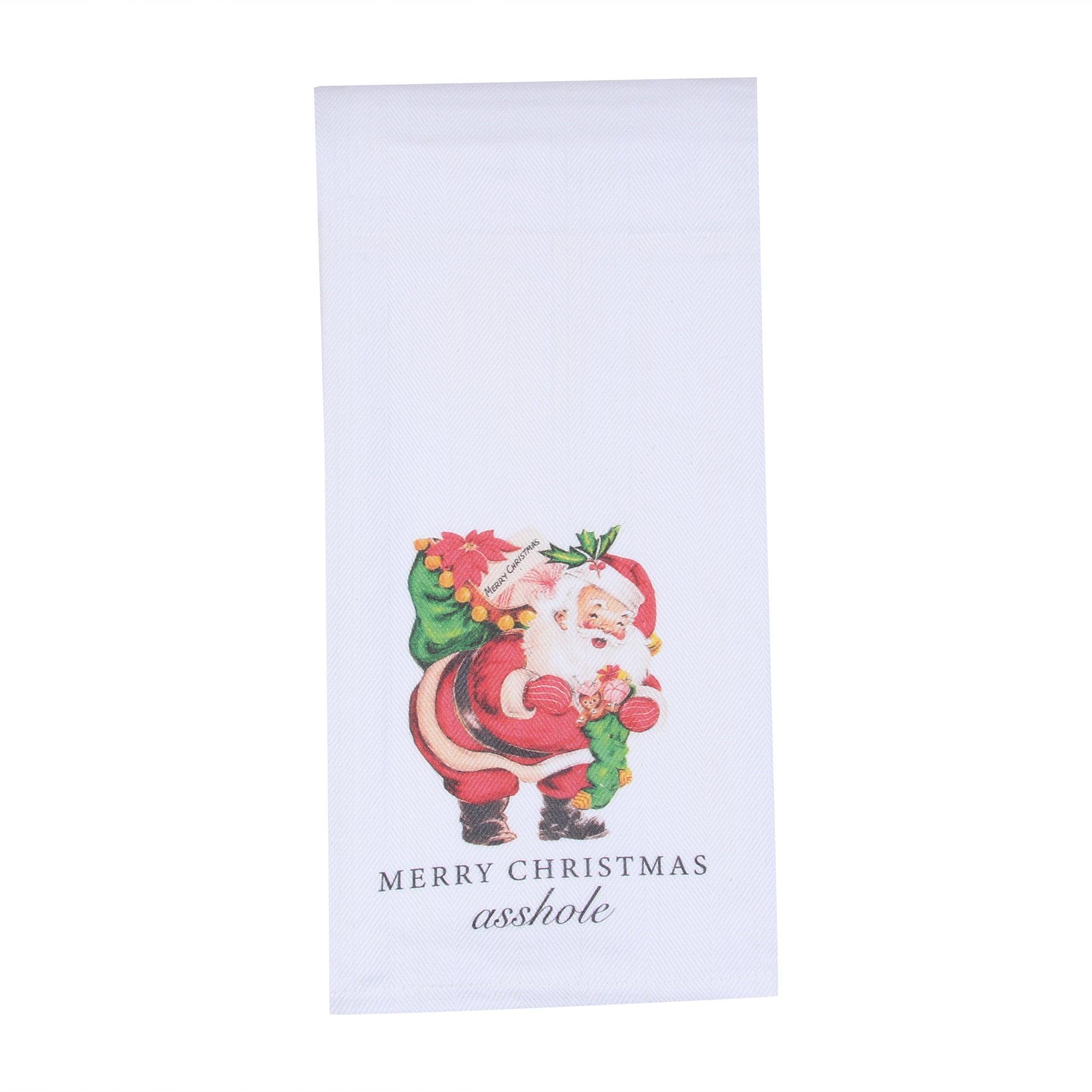 Add a bold and hilarious twist to your holiday decor with the Merry Christmas Asshole Tea Towel. Featuring a cheeky illustration of Santa alongside sassy text, this tea towel is perfect for those who love to keep their Christmas spirit fun, irreverent, and memorable. Whether you're gifting it to a friend with a wicked sense of humor or spicing up your own kitchen this season, this towel brings laughter and holiday cheer in equal measure.