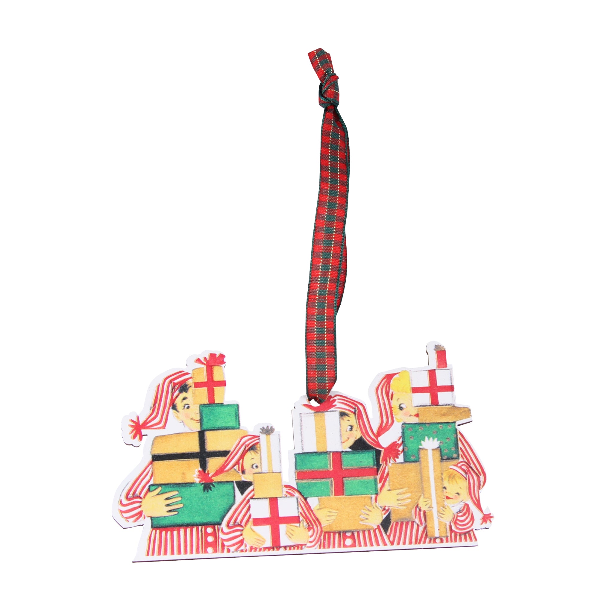 Bring cozy charm and festive family spirit to your Christmas tree with this People With Gifts Christmas Ornament! Showcasing a joyful family dressed in classic holiday pajamas, each member carrying beautifully wrapped gifts, this ornament perfectly captures the warmth, togetherness, and excitement of Christmas morning.