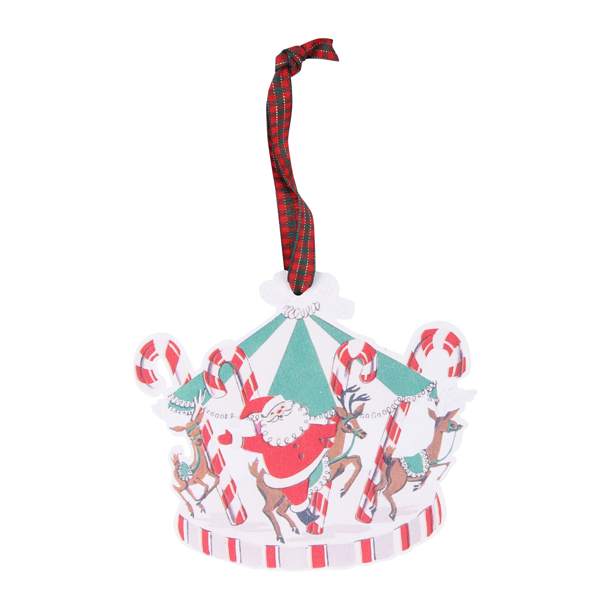 Add a touch of whimsical wonder to your Christmas décor with this Santa On Carousel Christmas Ornament! Featuring jolly Saint Nick enjoying a magical ride on a festive carousel decorated with candy canes and playful reindeer, this enchanting ornament brings joyful motion and North Pole charm to your holiday tree.