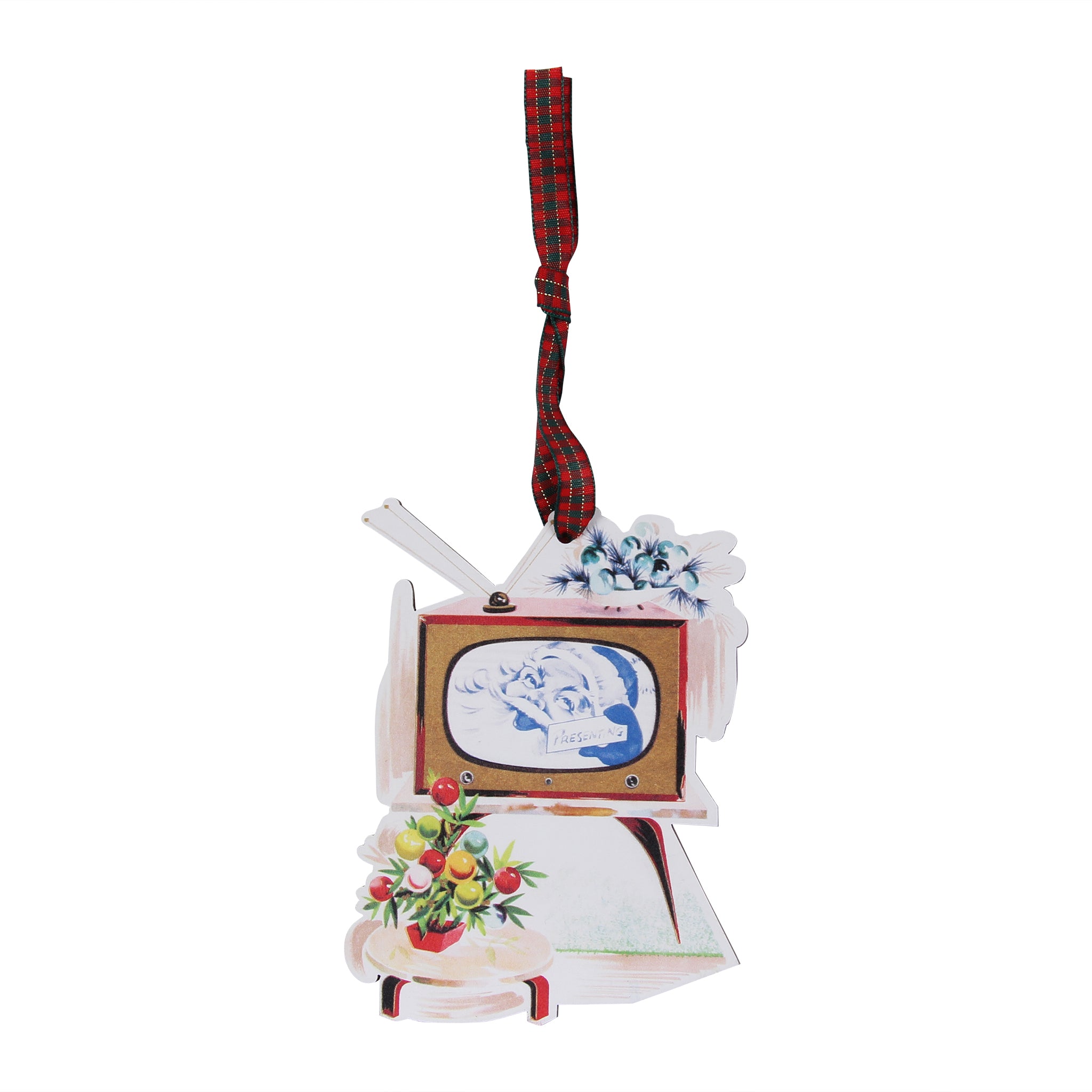 Printed with rich, detailed artwork, this Santa TV Christmas ornament captures the magic of tuning in to holiday specials on an old-school television set. Complete with festive colors, snowy accents, and Santa’s signature smile, it’s the perfect conversation piece for your Christmas tree, mantle garland, or holiday display.