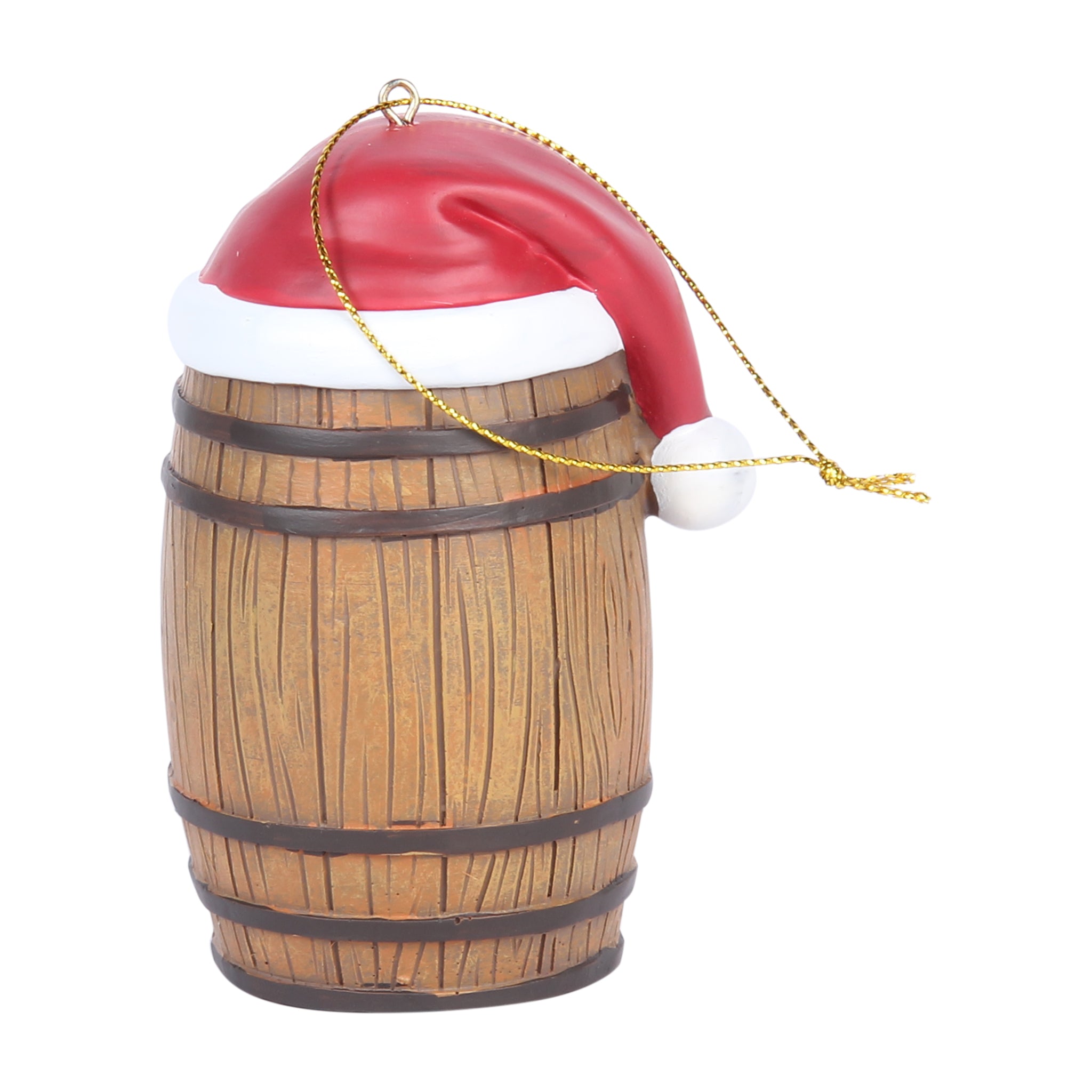 Bring holiday cheer to your bourbon-loving friends with this whimsical resin ornament shaped like a classic bourbon barrel sporting a jolly Santa hat. Featuring "The North Pole Distilling Company" in festive lettering, it's the perfect blend of spirits and seasonal spirit. Hang it on your tree for a conversation-starting decoration that celebrates both Christmas and craft whiskey culture.