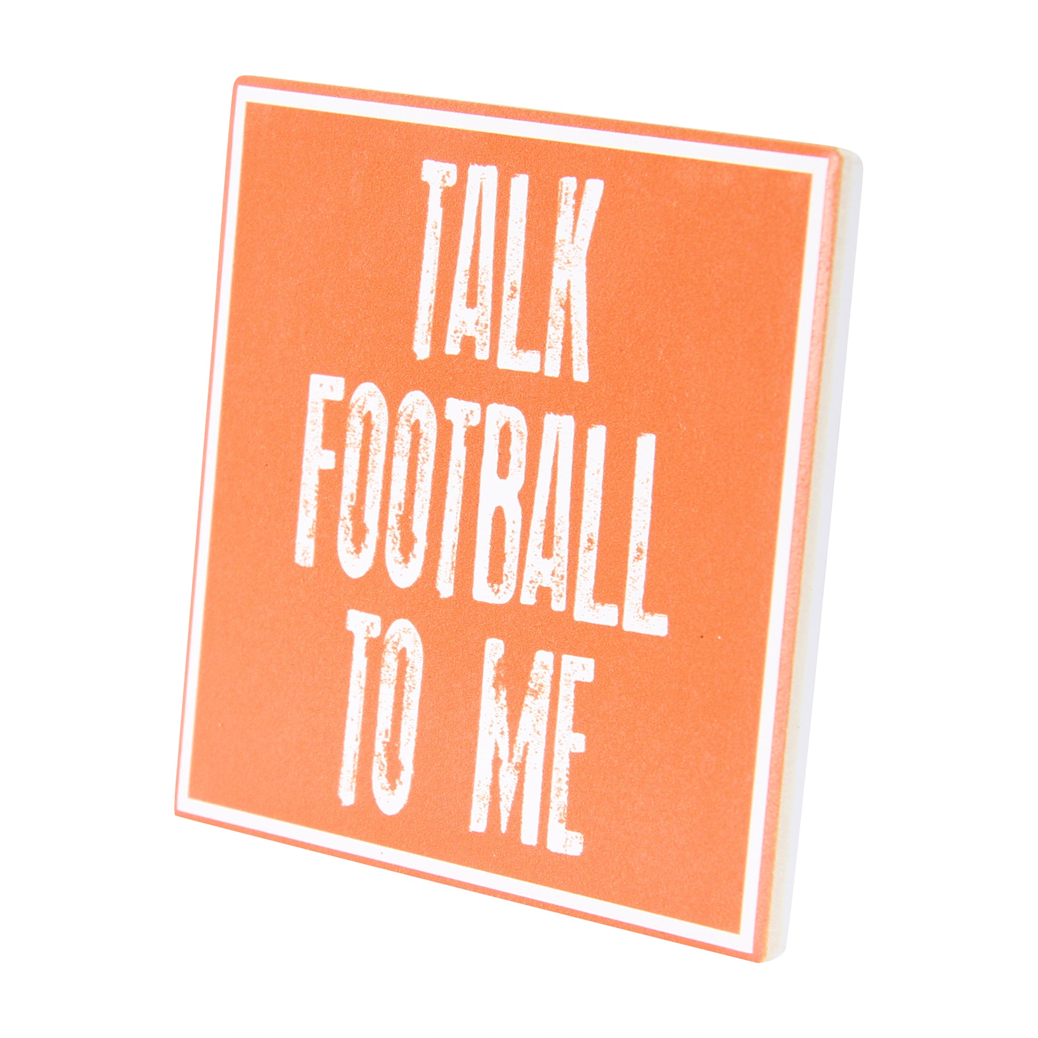 Score a touchdown with every sip using the Talk Football To Me Ceramic Coaster! This playful coaster keeps your drinks safe from spills while showing off your love for the game. Perfect for game day or any day, it adds a fun, sporty vibe to your table. Keep your surfaces protected and your football spirit alive!