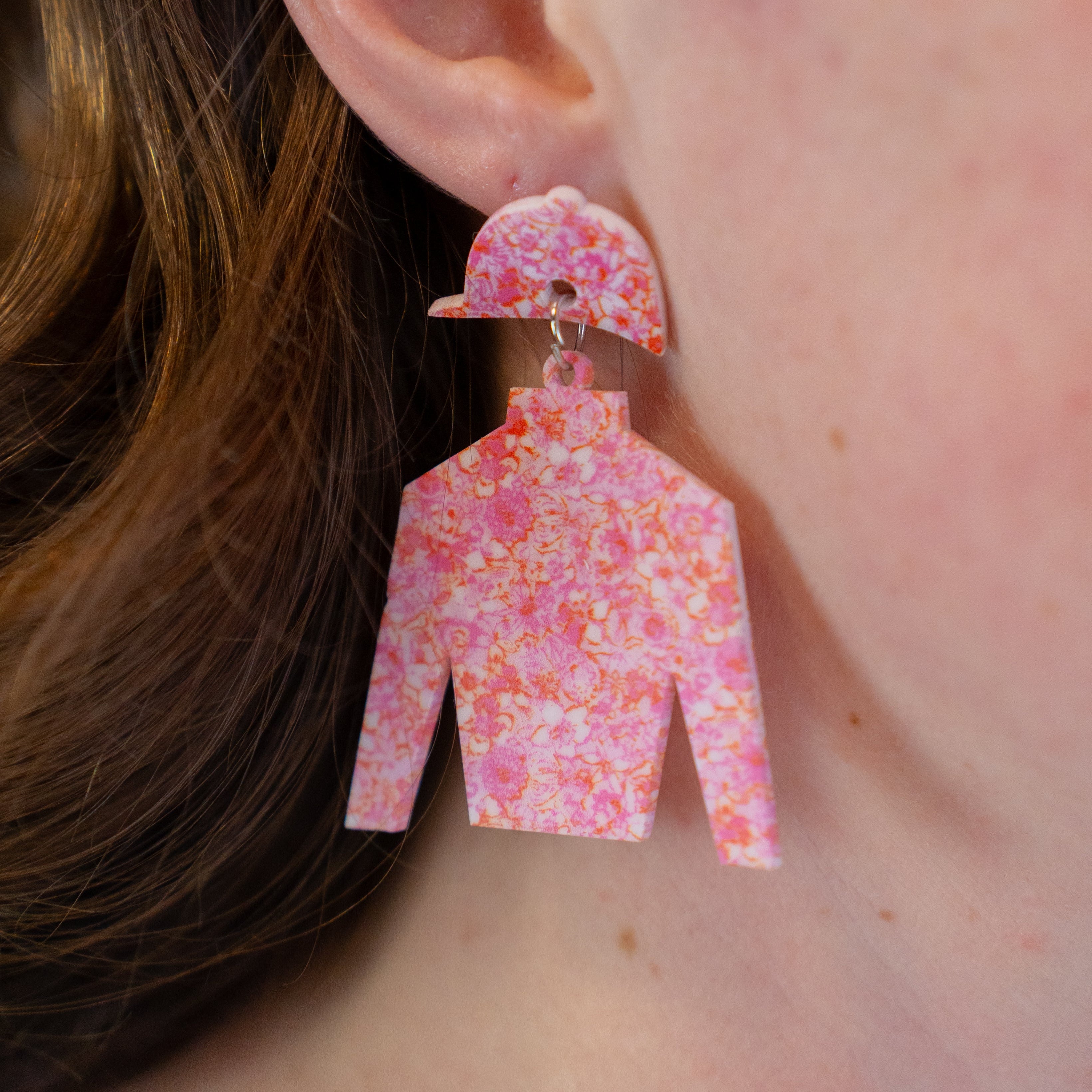 Pink Floral Jockey Silk Earrings