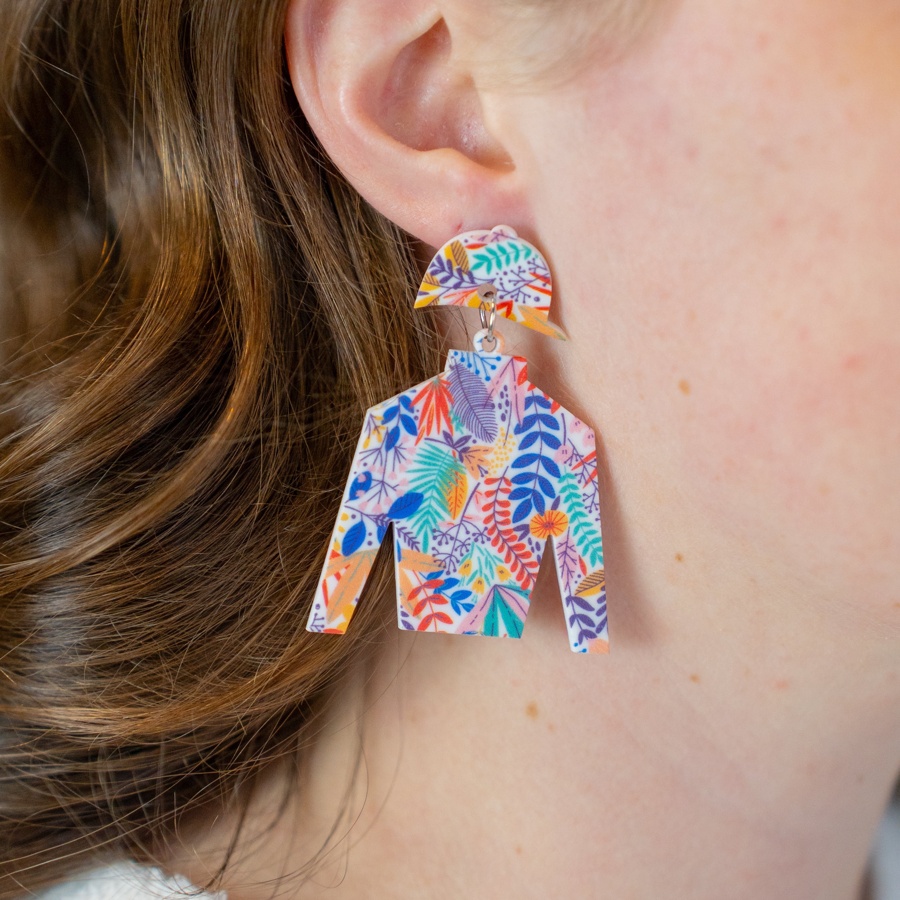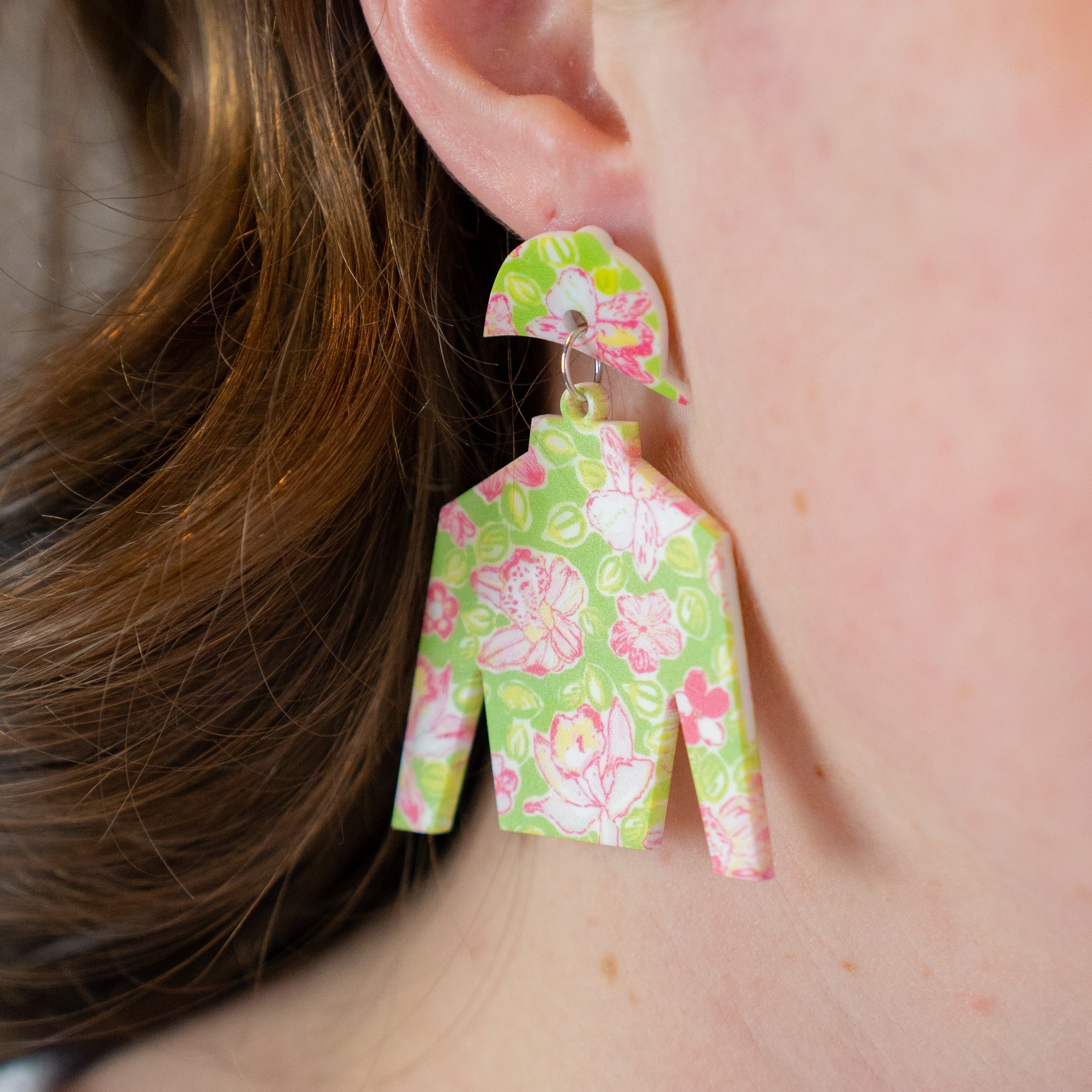 Yellow, Pink, Green, and Orange Floral Jockey Silk Earrings