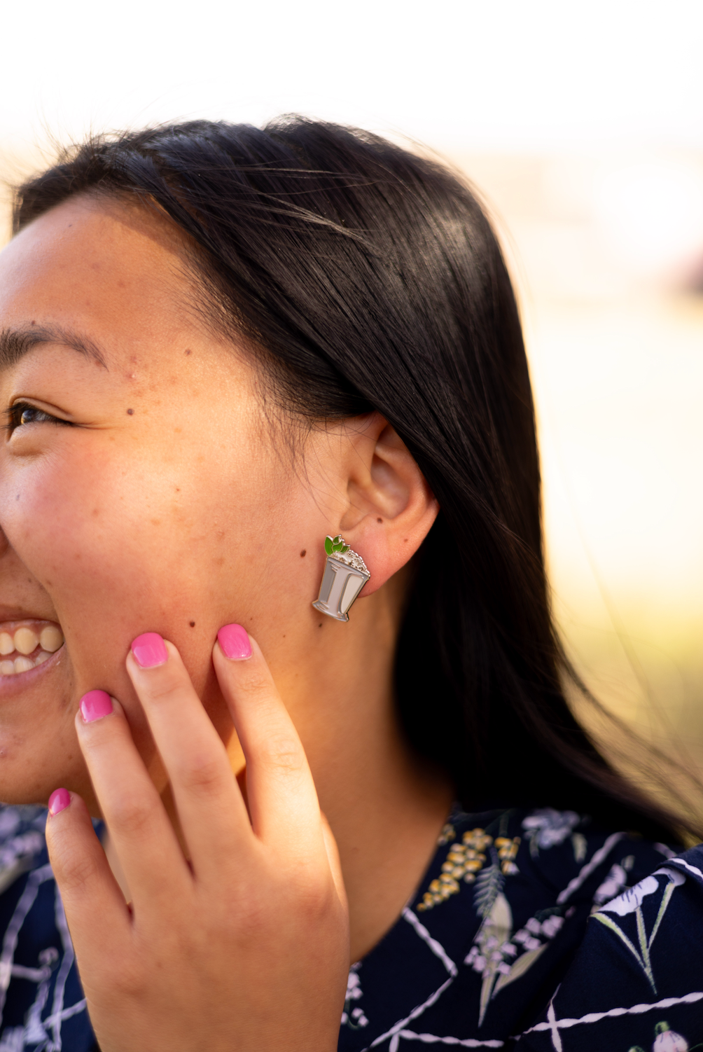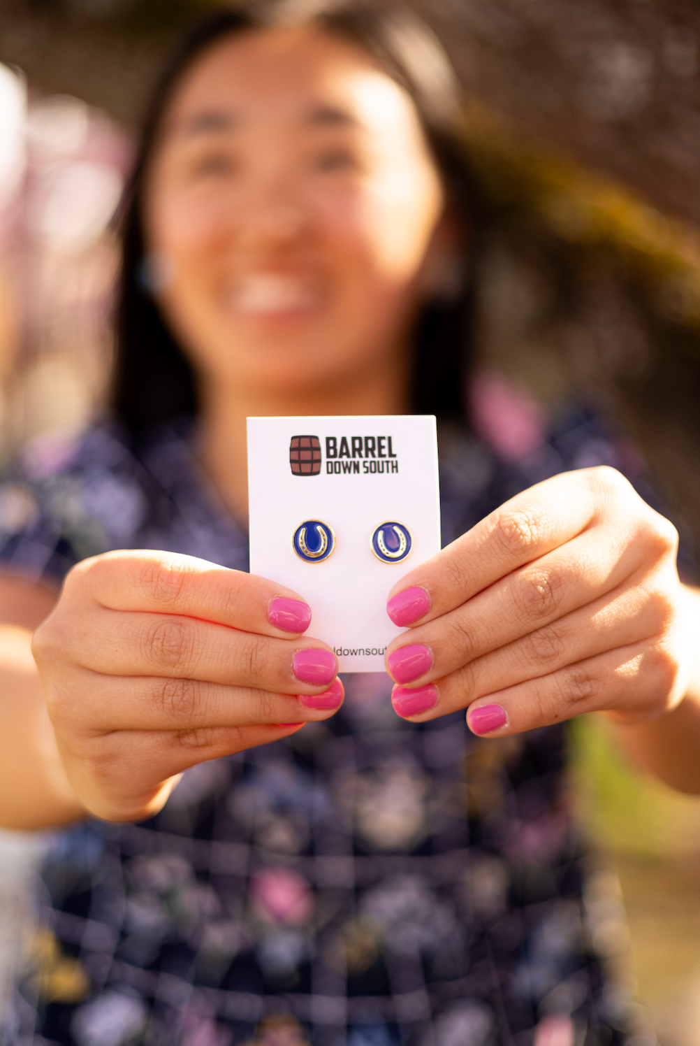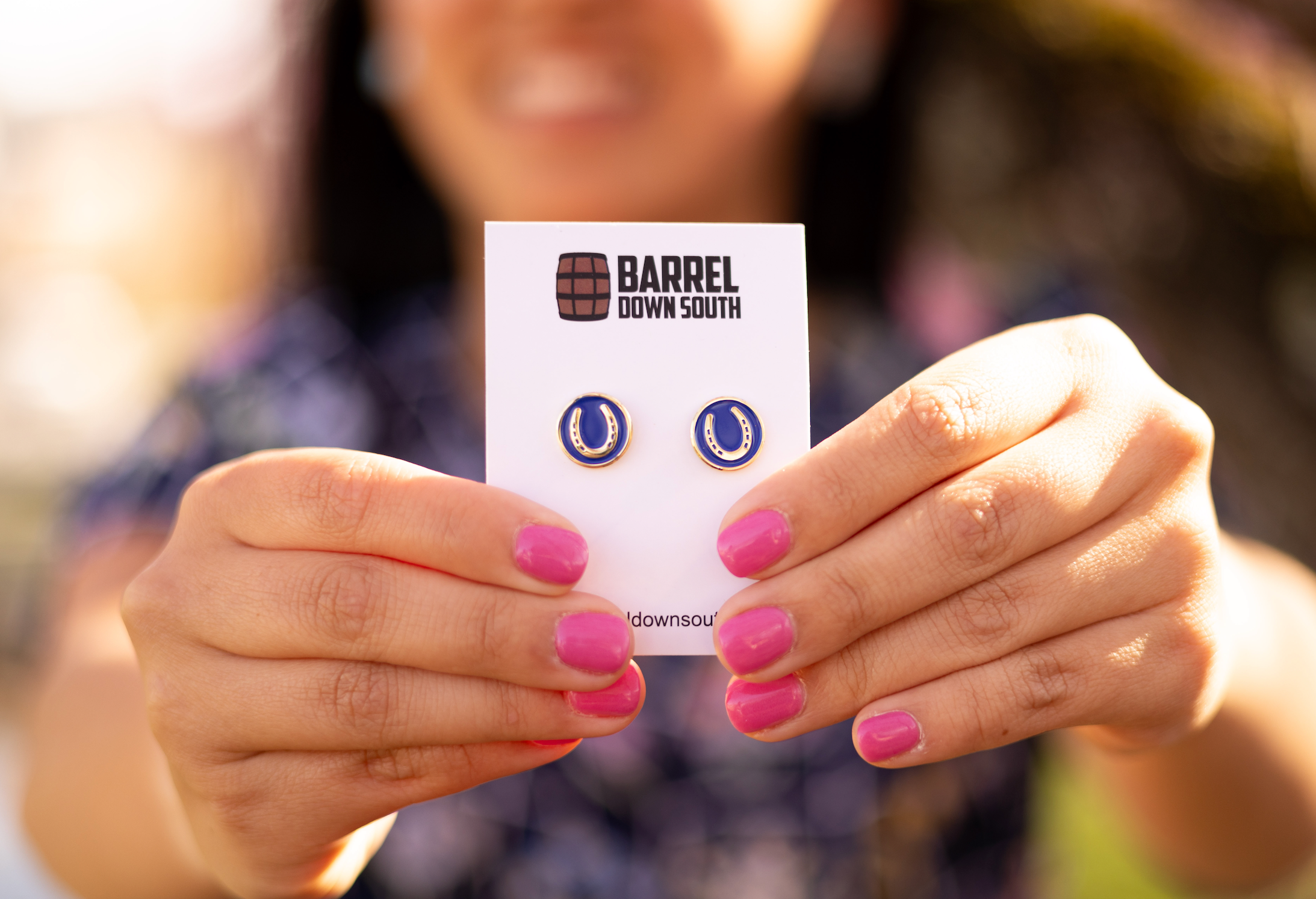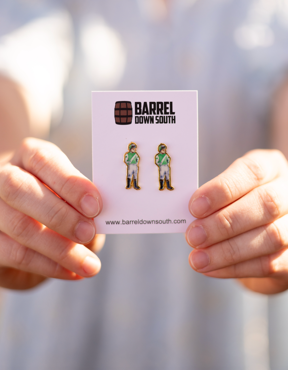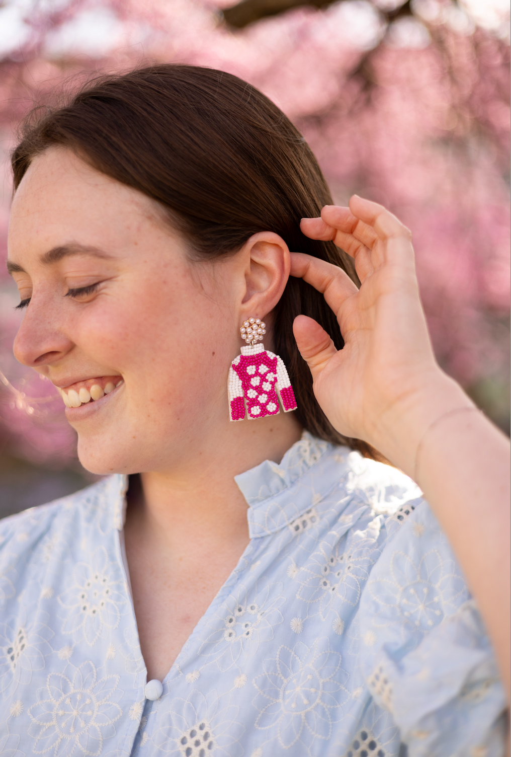 Light Blue/Pink Stripe Jockey Silk Earrings