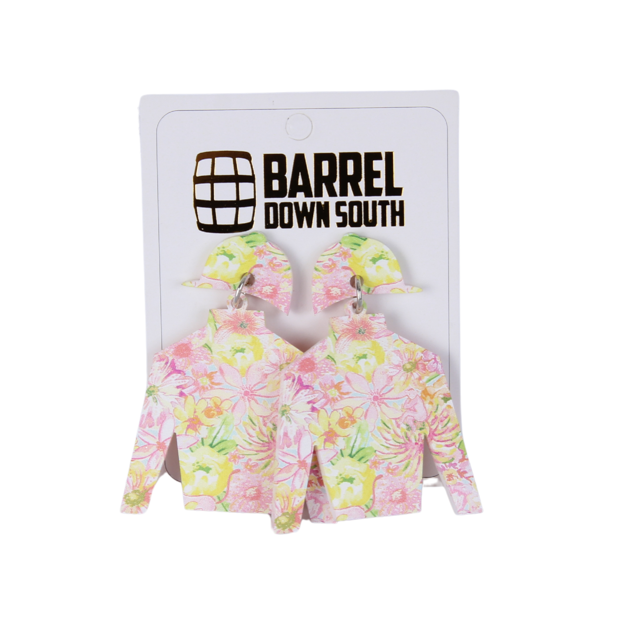 Yellow Green and Pink Floral Jockey Silk Acrylic Earrings