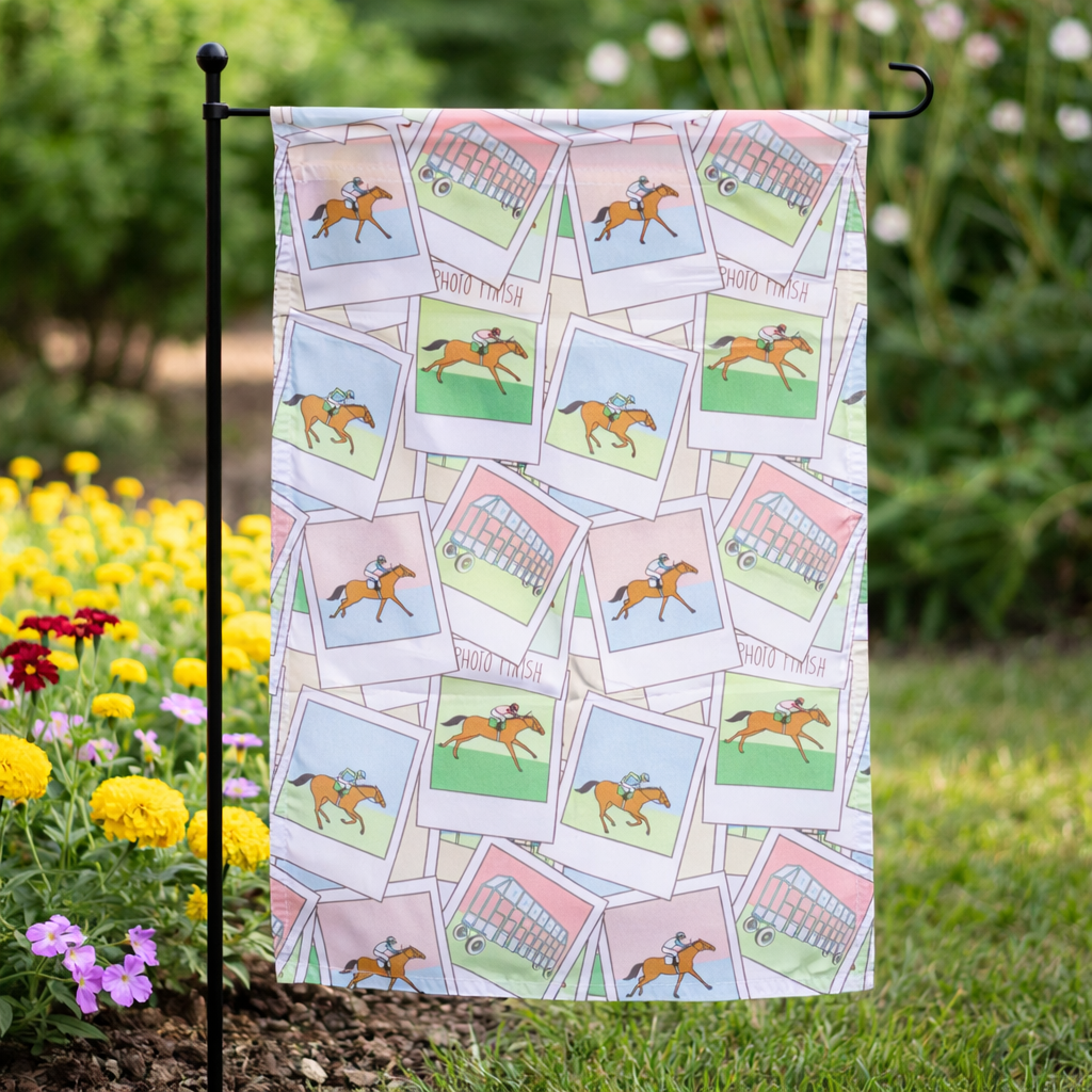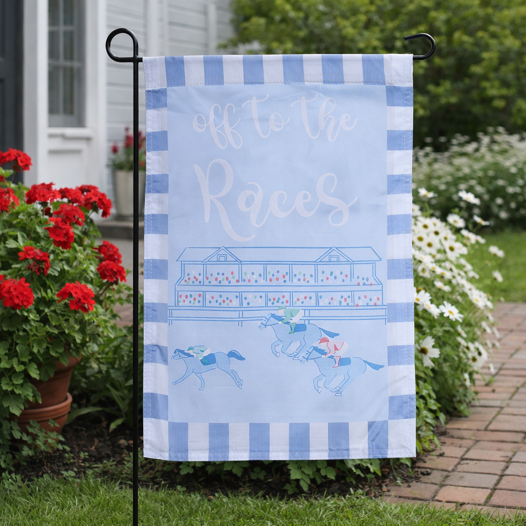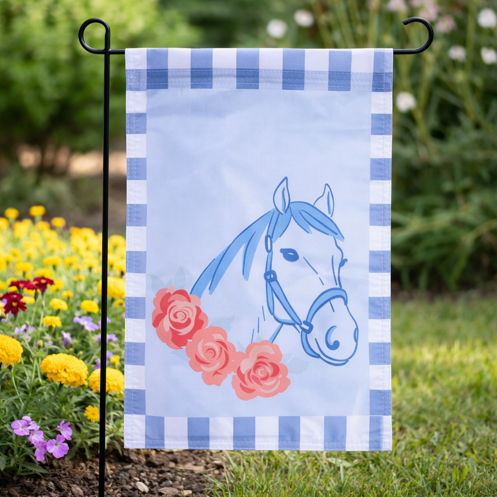 Light Blue Horse Racing Derby Garden Flag - Barrel Down South