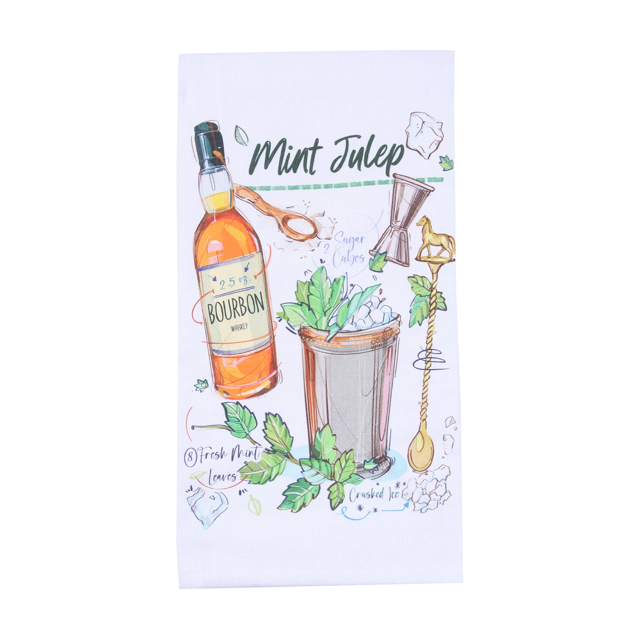Mint Julep Bourbon Recipe Tea Towel