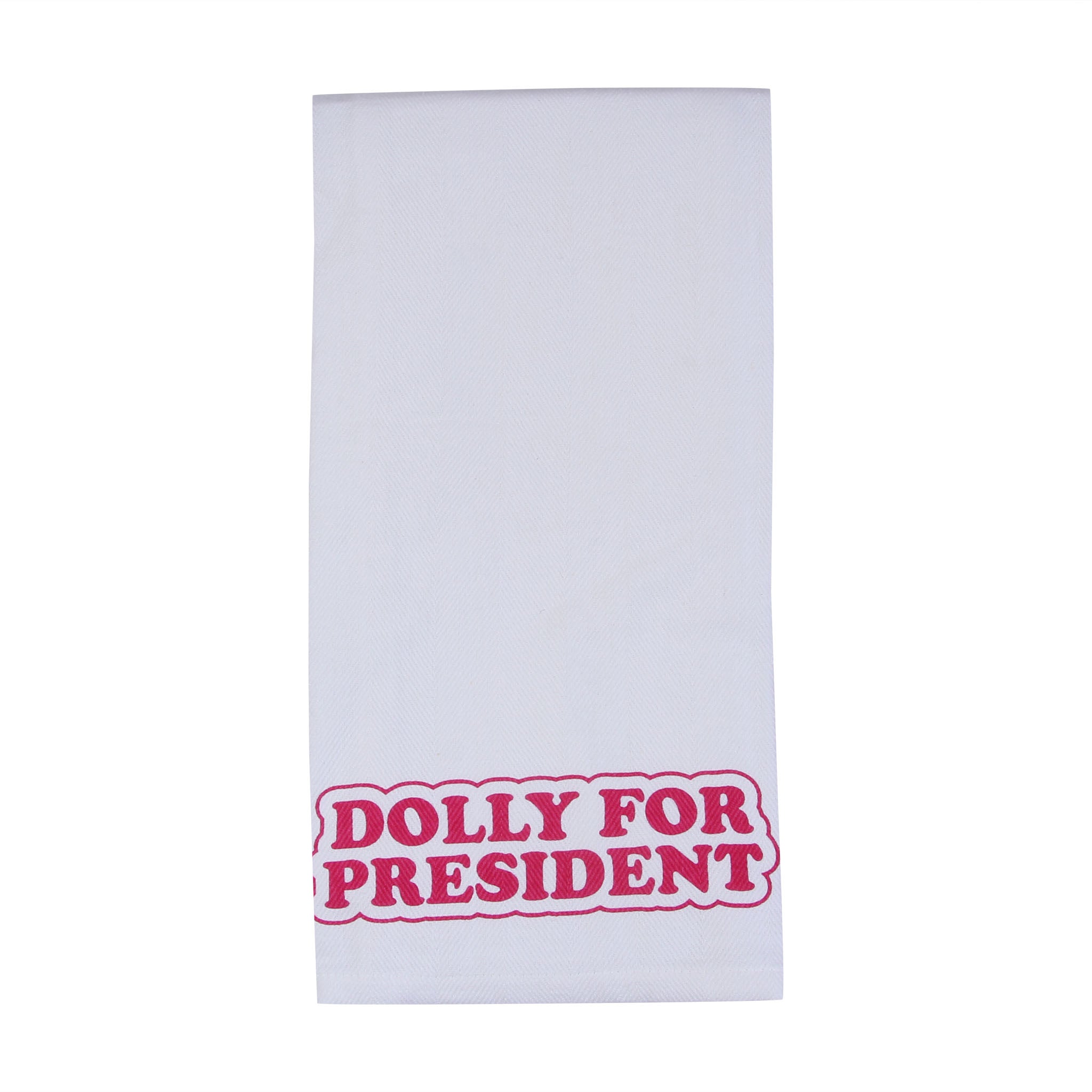 Declare your vote for rhinestones, kindness, and country music royalty with our Dolly for President Tea Towel, a tribute to the one and only Dolly Parton. Featuring bold typography and timeless Southern wit, this towel is the perfect addition to any kitchen, bar cart, or hostess station that could use a little sparkle and heart.