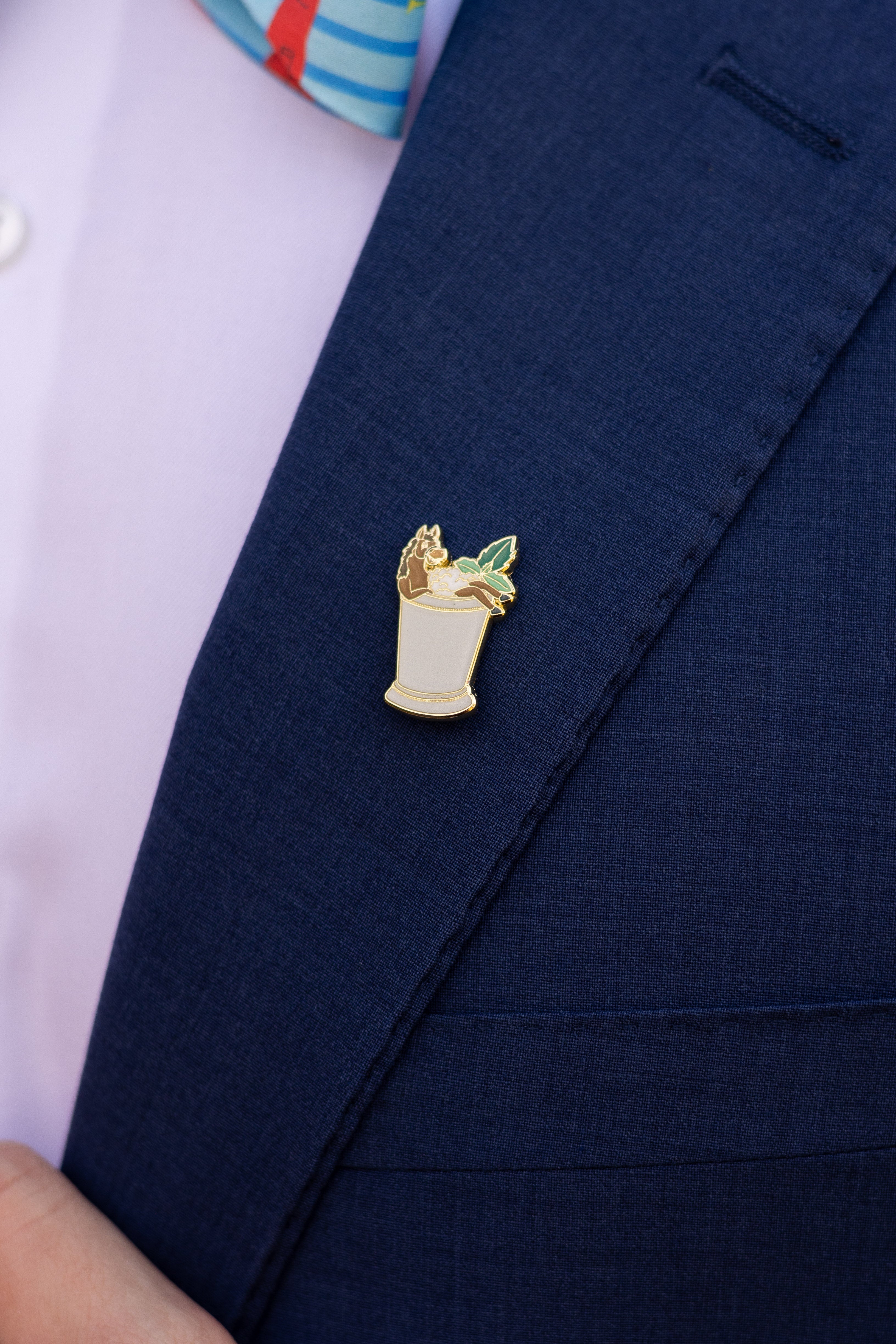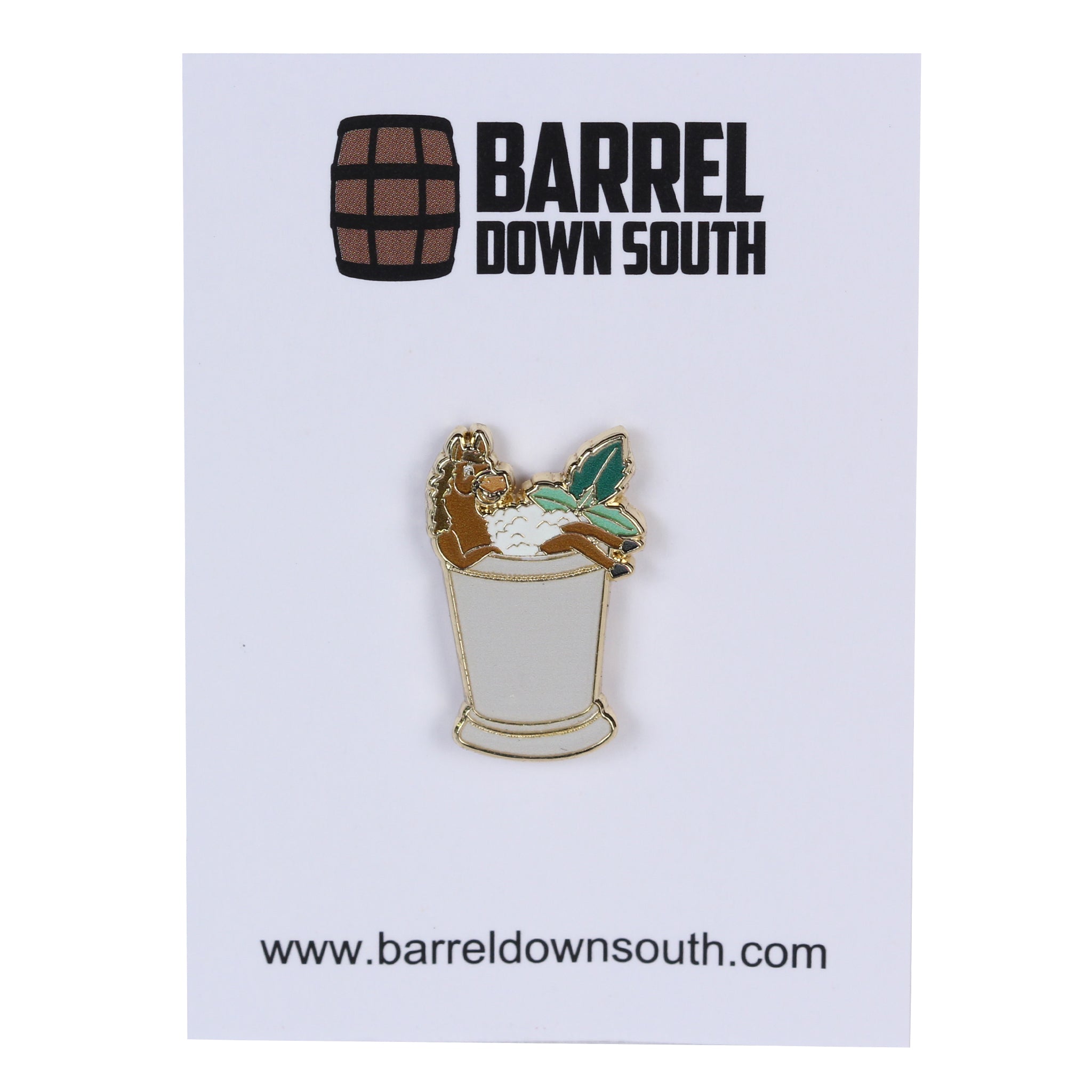 Horse Sitting In Mint Julep Cup Lapel Pin