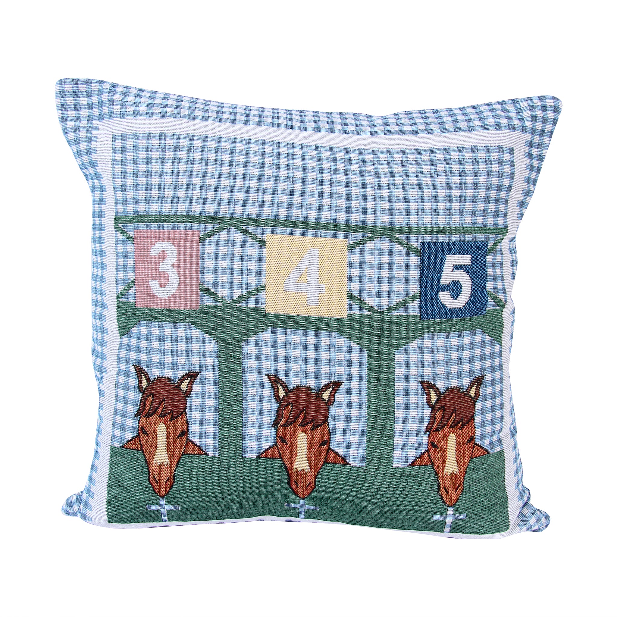 This charming Starting Gate Pillow (Blue) brings equestrian spirit to any room with its whimsical design of thoroughbreds eagerly awaiting their moment at the starting gate. Set against a classic blue and white plaid backdrop, the detailed horse illustration captures that thrilling pre-race energy. Perfect for horse lovers, racing enthusiasts, or anyone who appreciates a touch of Southern charm and personality in their home décor. A delightful conversation starter that celebrates the excitement of the track.