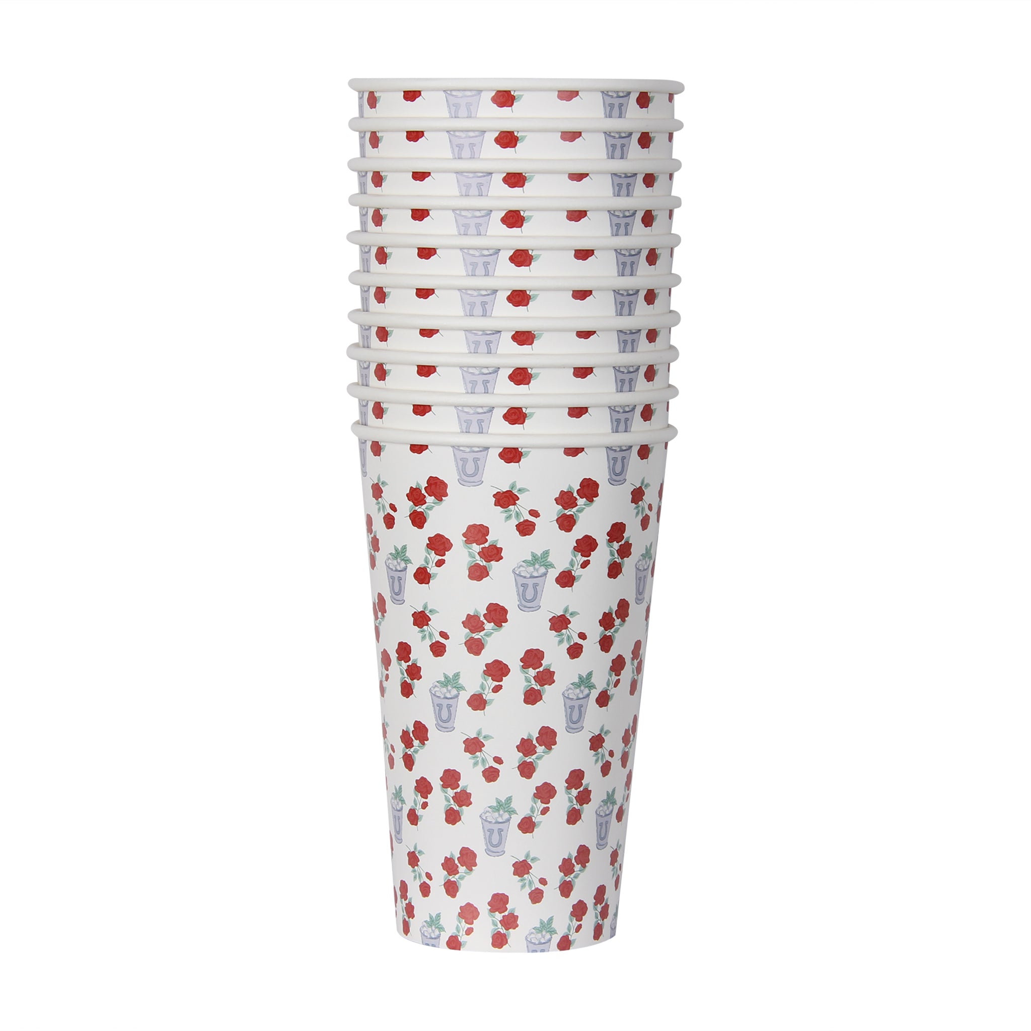 Celebrate classic Derby tradition with our Mint Juleps and Roses Paper Cups. Featuring charming mint julep cups paired with vibrant red roses, this timeless design captures the elegance and festive spirit of race day entertaining.