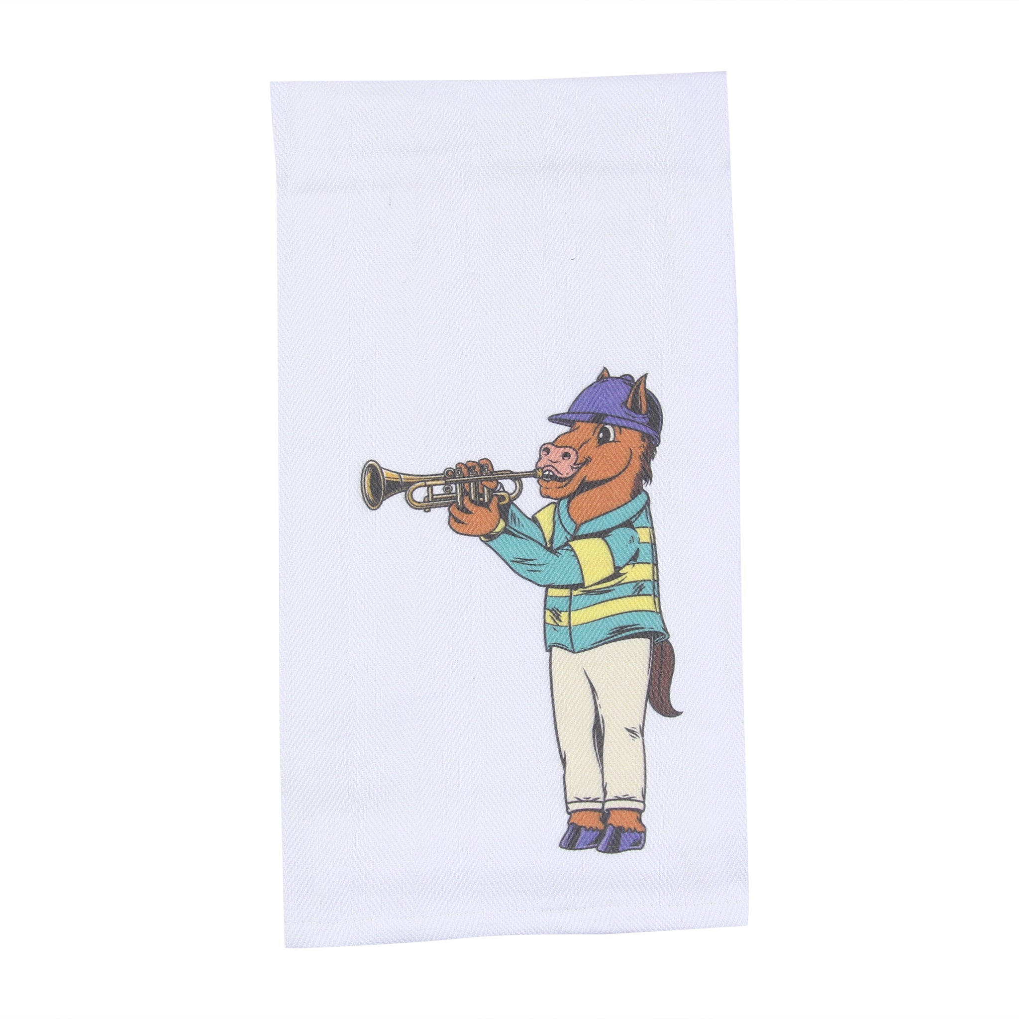 Saddle up your kitchen with this whimsical Call To The Post Tea Towel that captures the spirit of race day! Featuring a charming illustration of a horse playing the bugle, the iconic call to the post, this piece brings Derby humor and Southern charm to your home. Perfect for horse racing enthusiasts, it's a fun conversation starter that celebrates the pageantry and personality of thoroughbred racing. Soft, absorbent, and ready to add a touch of equestrian wit to your culinary adventures.