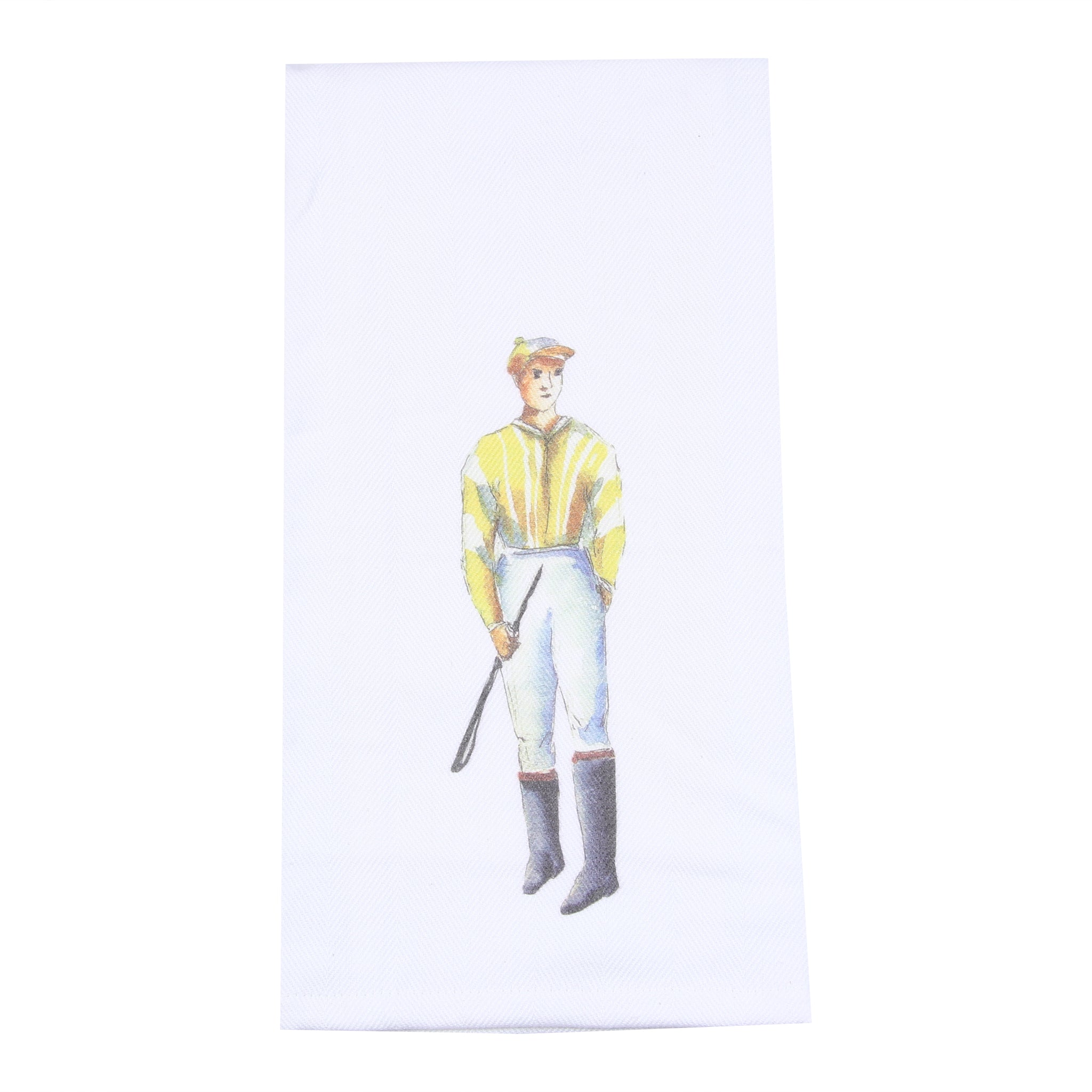 Saddle up your kitchen with this charming Yellow Standing Jockey Tea Towel showcasing a spirited jockey in bold yellow silhouette. Perfect for horse racing enthusiasts and equestrian lovers, this playful design brings a touch of Southern charm and sporting spirit to your everyday kitchen routine. Whether you're drying dishes or adding a pop of personality to your décor, this standing jockey tea towel is sure to be a conversation starter. A fun way to celebrate your love for the track!