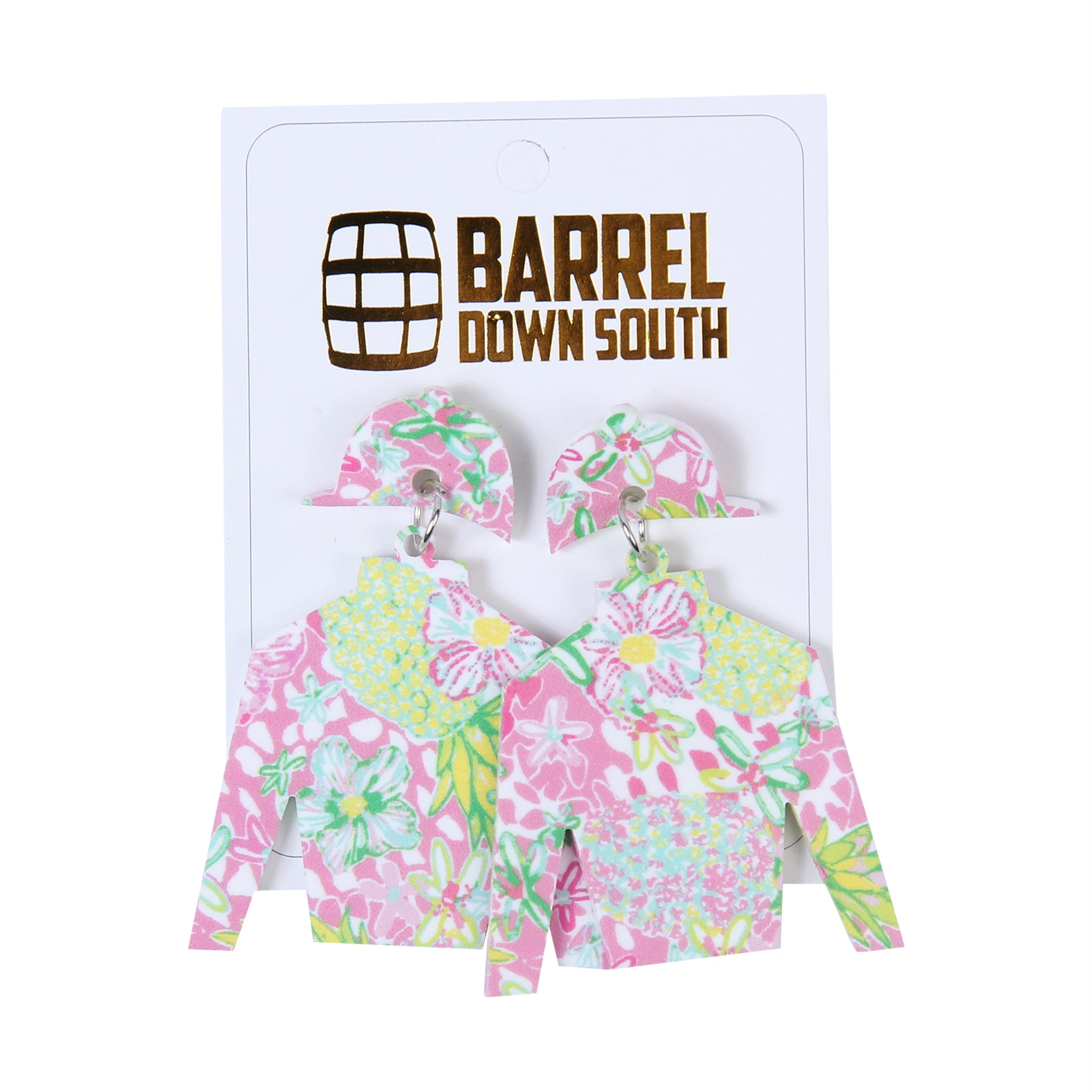 Pink Floral Jockey Silk Earrings