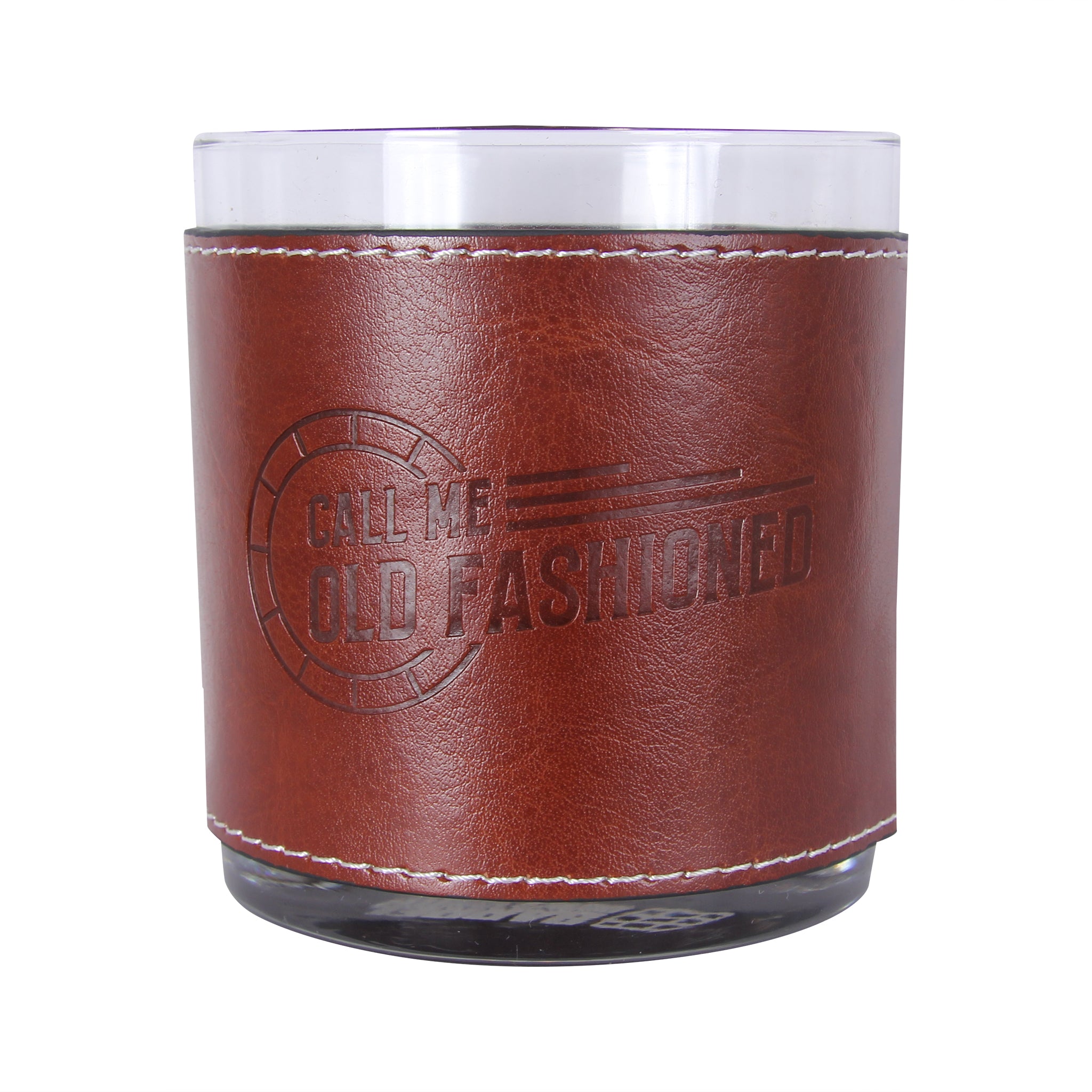 Call Me Old Fashioned Circle Design Faux Leather Rocks Glass