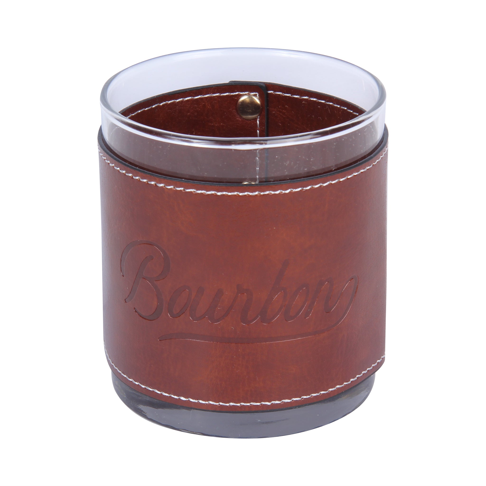 Bourbon Script Faux Leather Rocks Glass