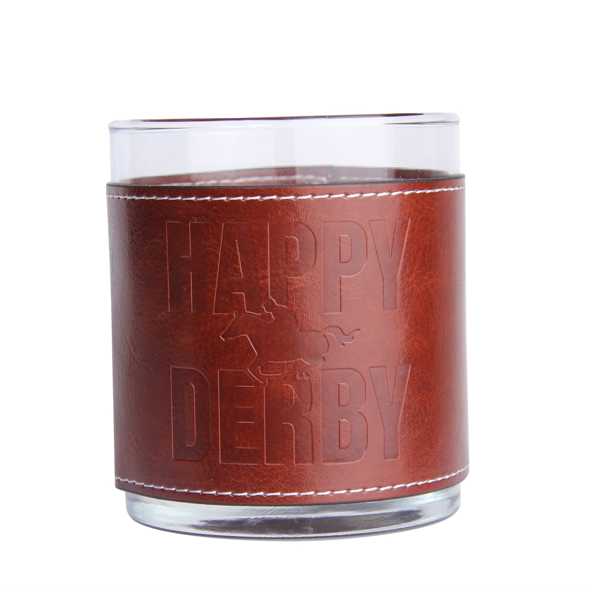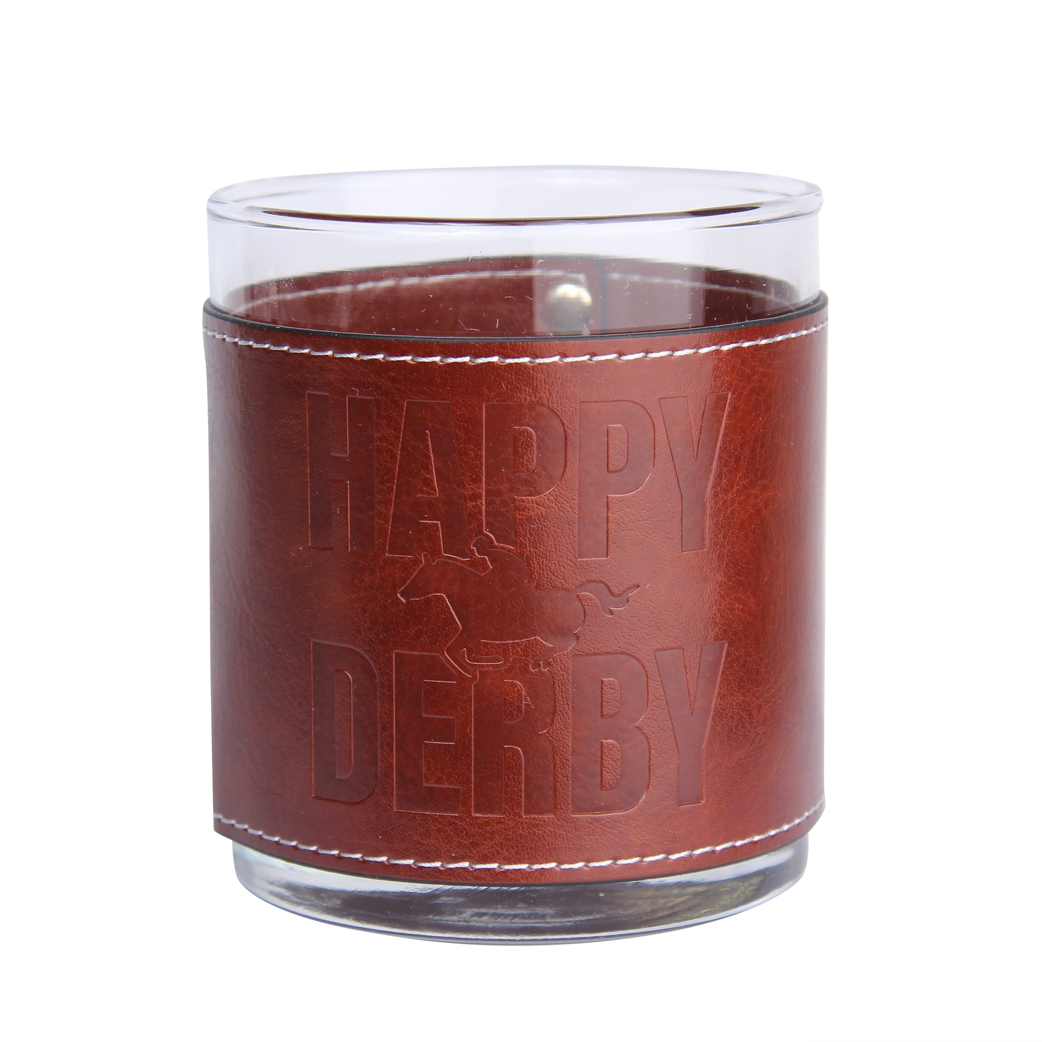 Elevate your cocktail experience with our Happy Derby Faux Leather Rocks Glass. Made with faux leather, this double old fashioned bourbon whiskey glass is perfect for sipping on your favorite spirit. Enhance your drinking experience with a touch of luxury. Cheers!