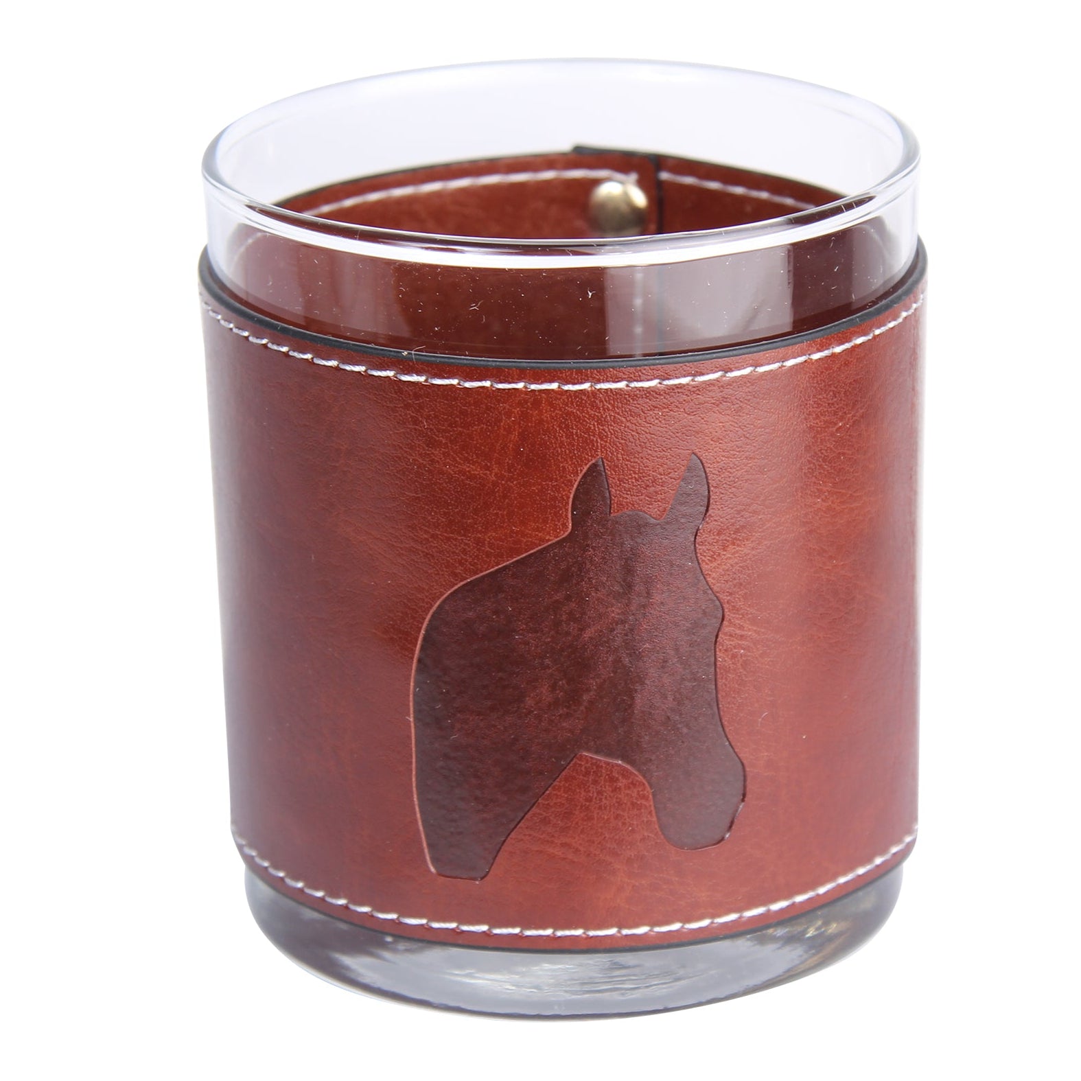 Crafted from premium faux leather, this rocks glass features a striking horse head design. The double old fashioned size is perfect for savoring your favorite bourbon or whiskey, while the faux leather adds a touch of sophistication to your drinking experience. Elevate your barware collection with this unique and stylish glass.