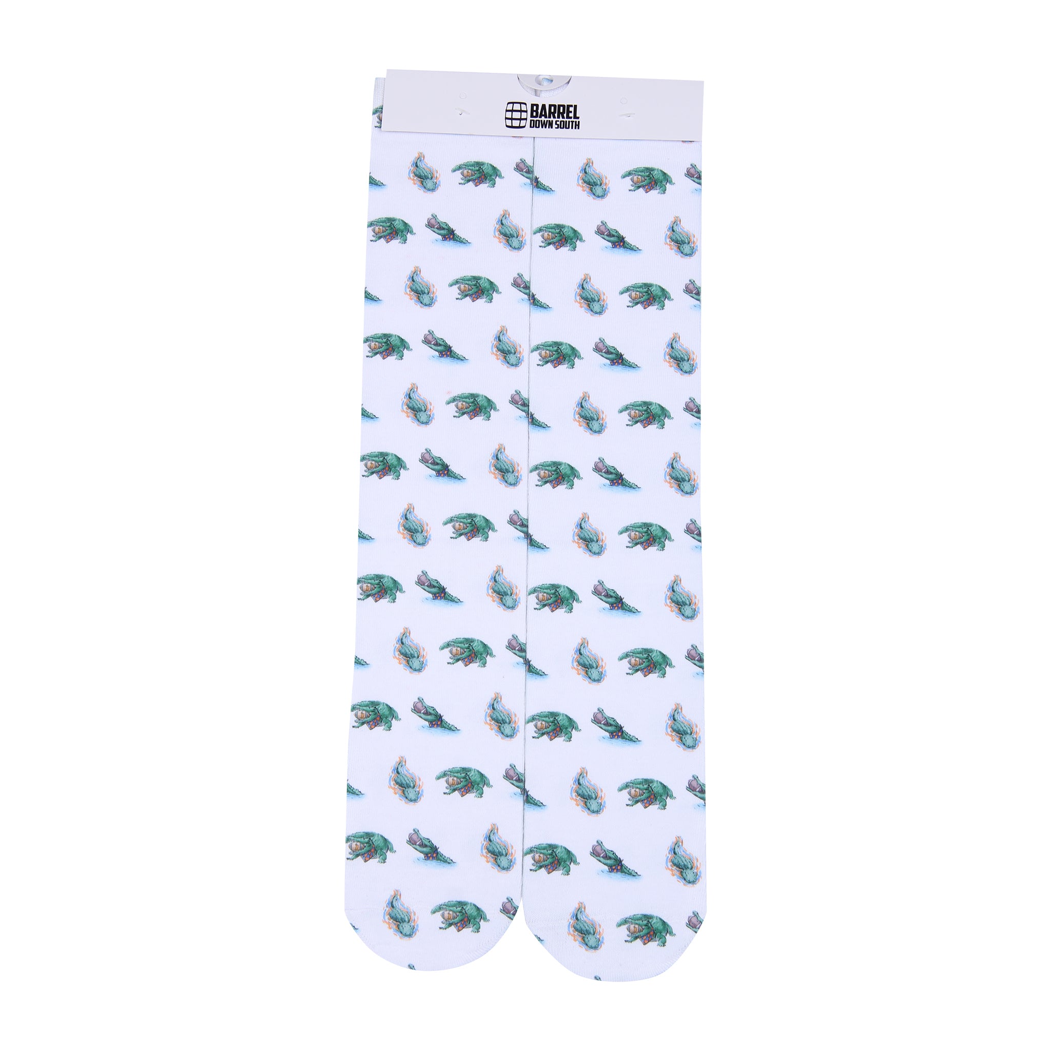 Step up your sock game with these Alligator Pattern Printed Socks. Featuring a bold alligator design, they add a unique touch to any outfit while providing comfortable wear all day long. Perfect for those who want to showcase their style with a subtle yet striking accessory. Durable and soft, these socks are ideal for everyday use or special occasions. Make a statement from the ground up with these eye-catching socks.