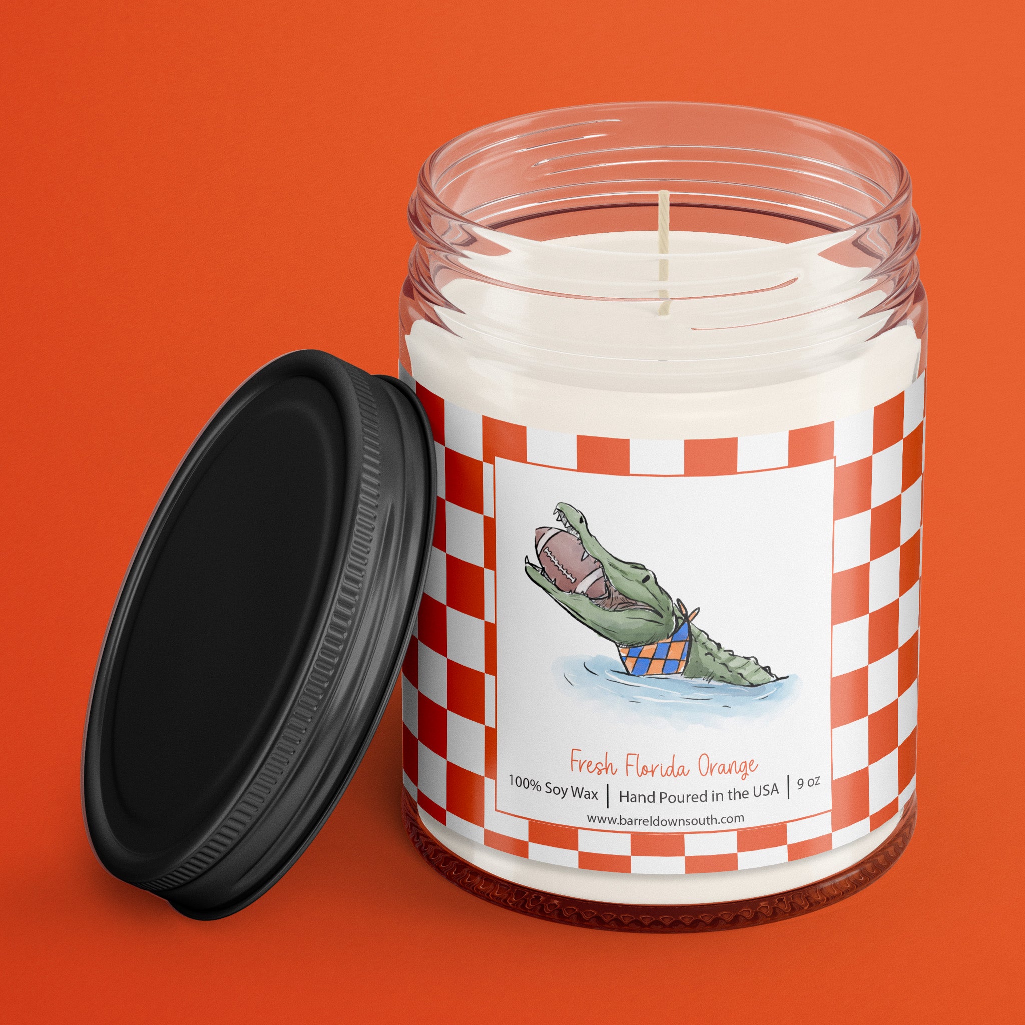 Bring a splash of Sunshine State charm to any room with this playful Fresh Florida Orange Candle. Featuring a gator gripping a football in its teeth, it's the perfect touchdown for Florida fans and sports enthusiasts alike. The bright citrus fragrance captures that fresh, zesty essence of Florida's famous oranges, while the quirky alligator design adds personality and conversation-starting flair. Whether you're decorating a game day gathering or just want to celebrate your love for the Gators, this candle delivers both aromatic warmth and Southern spirit in one fun package.