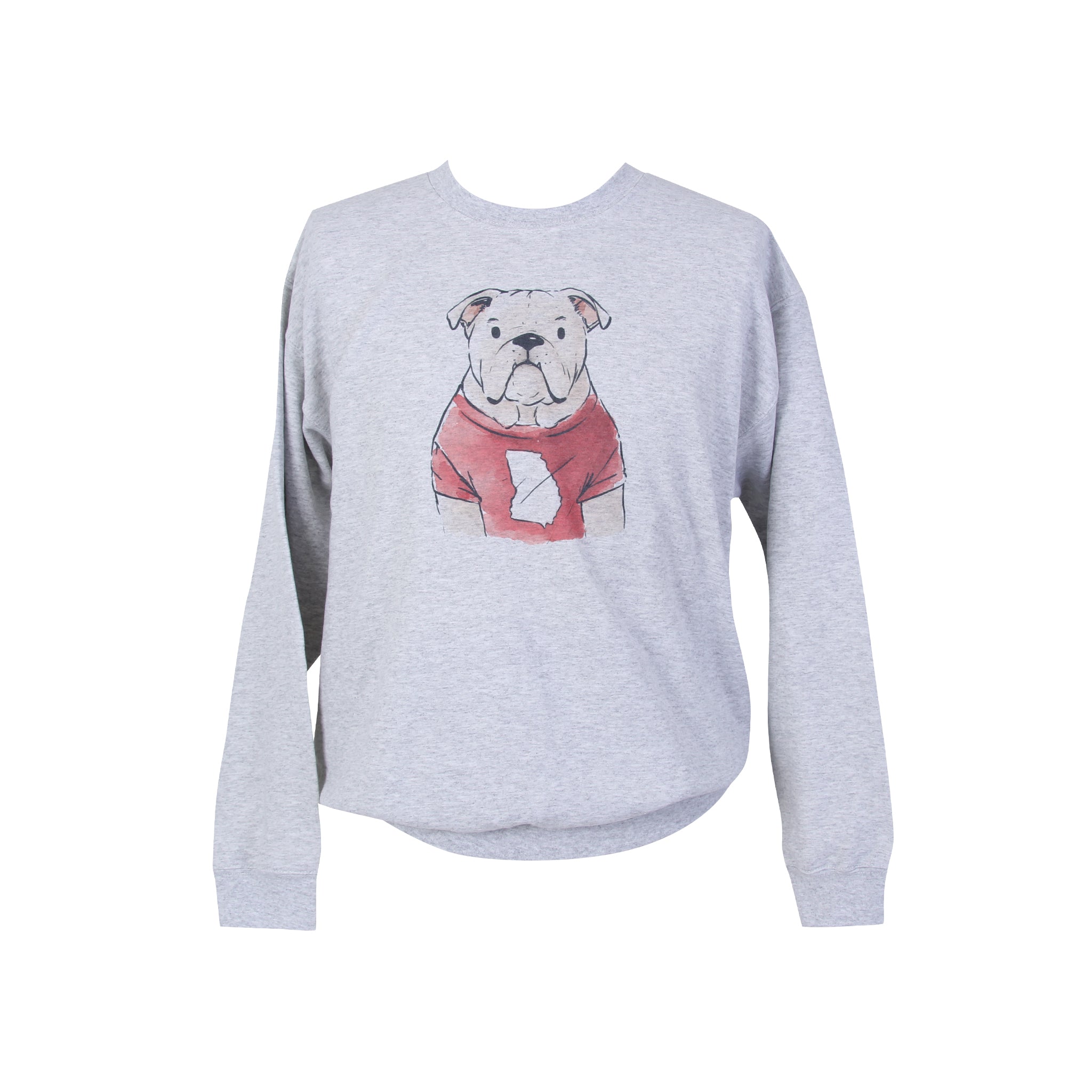 Show your Georgia pride with this cozy heather gray crewneck featuring a watercolor bulldog wearing a red tee with the state of Georgia front and center. Simple, classic, and full of Southern spirit — it’s the perfect game day sweatshirt for any Dawgs fan.