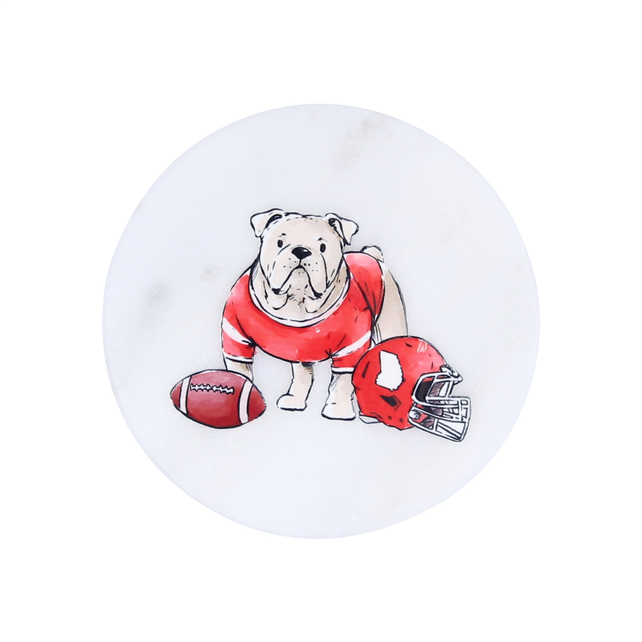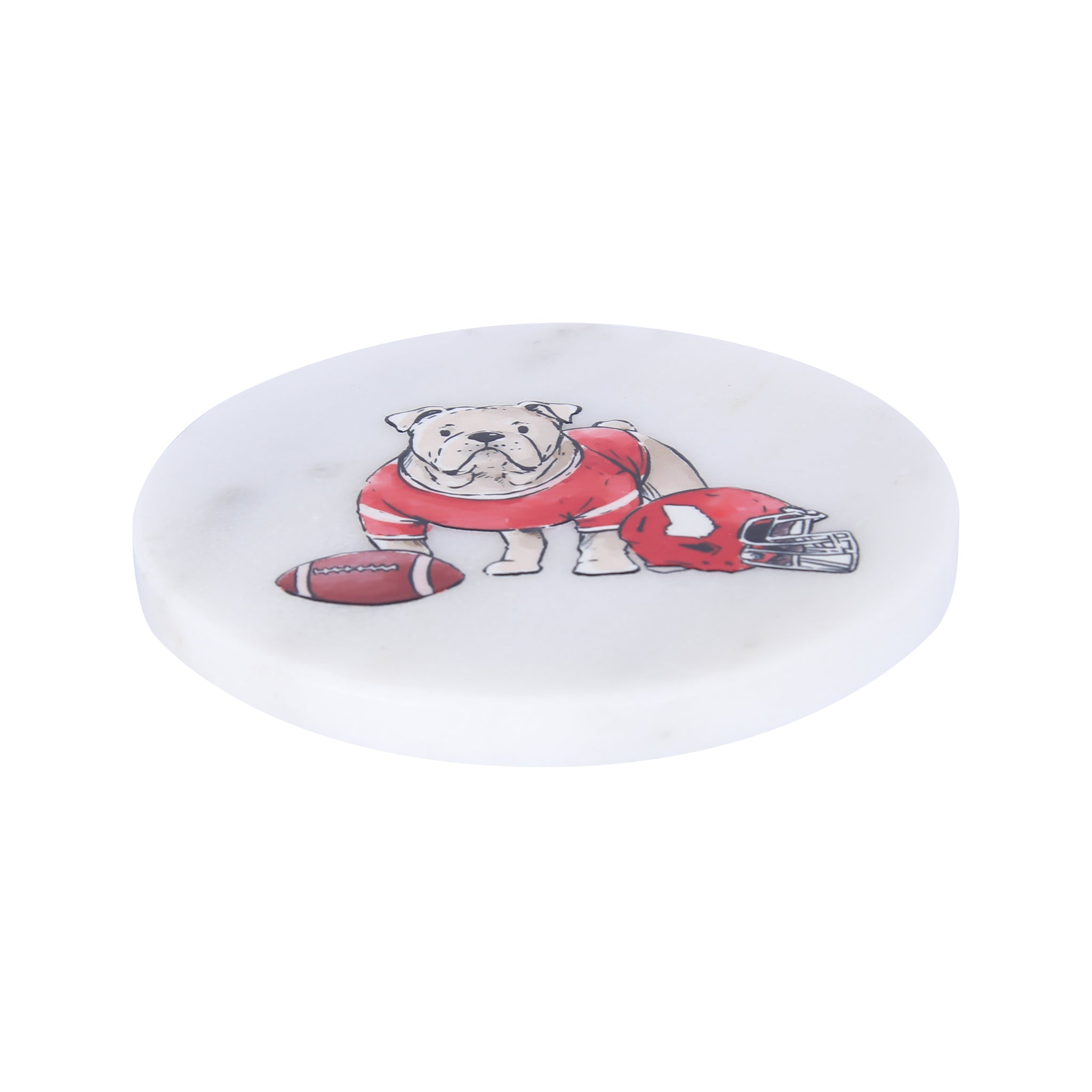 Our Georgia GA State Spirit Bulldog Marble Coaster from Barrel Down South is a perfect blend of style and function. Crafted with care, this coaster is ideal for safeguarding your surfaces. It's a great addition to any home kitchen or tabletop. Enjoy your favorite drink with our unique coaster. Add a touch of southern spirit to your drinkware collection today.