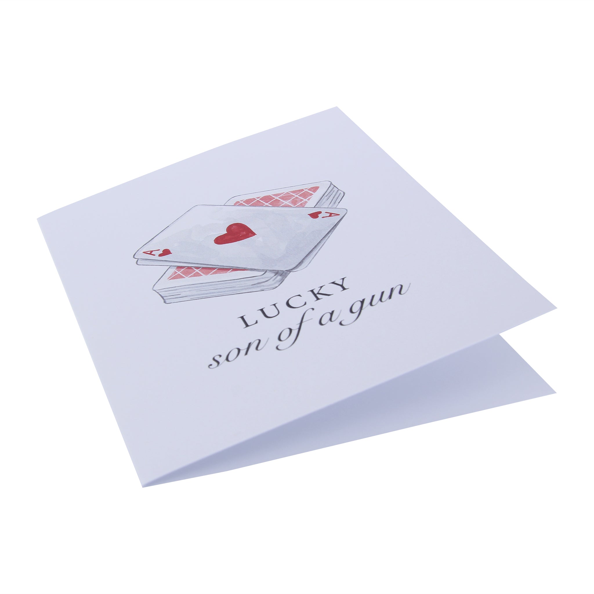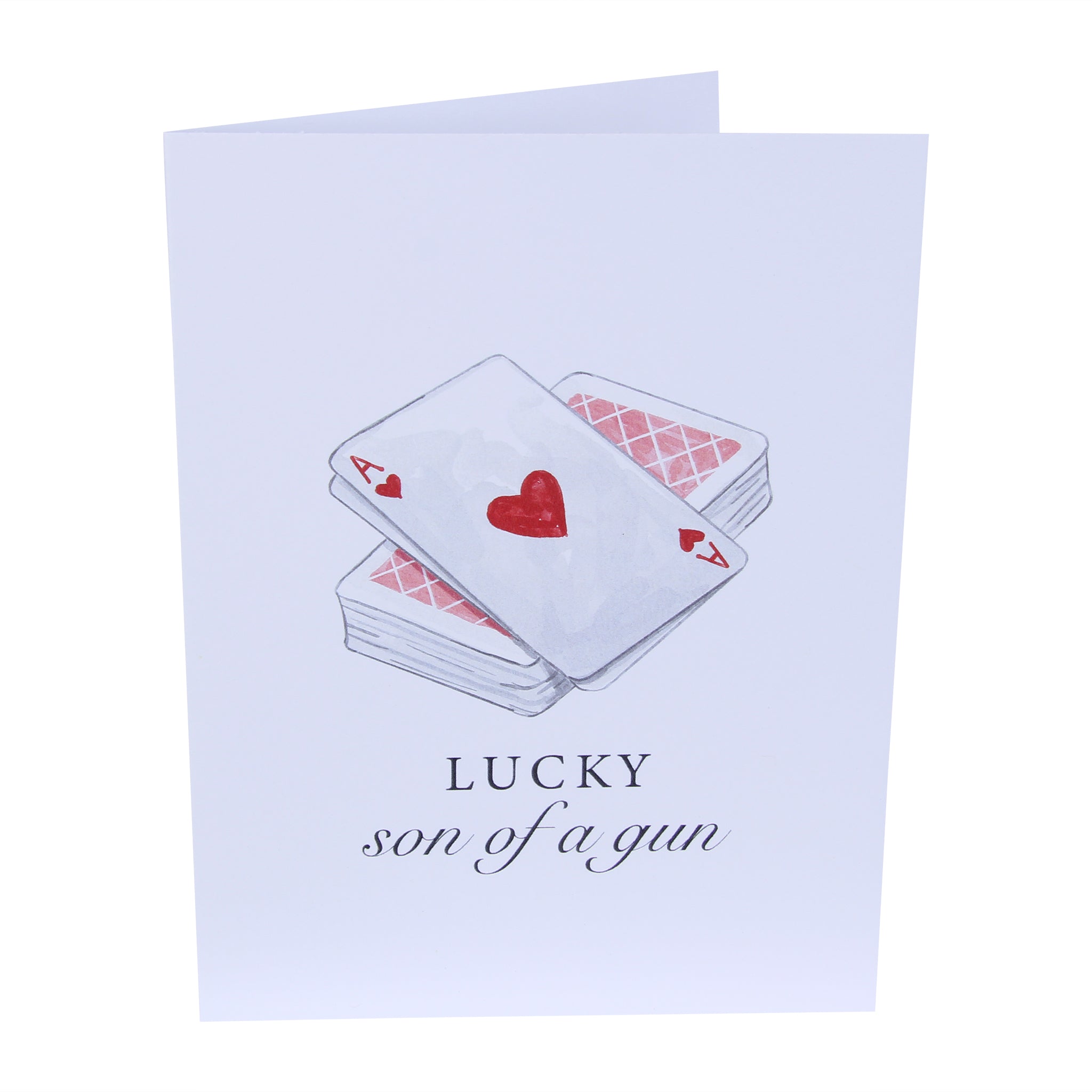 Celebrate with a wink and a smile using the Lucky Son of a Gun Greeting Card. Perfect for those who appreciate a cheeky twist, this card adds playful charm to any occasion. Send your luck and laughter wrapped in a bold, fun message that’s sure to brighten someone’s day.