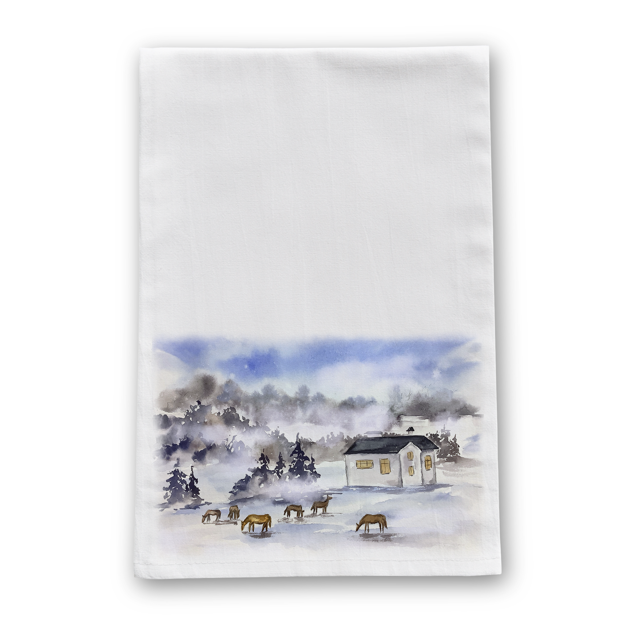 Add a touch of rustic charm to your kitchen with the Winter Horse Farm Tea Towel. Featuring a cozy winter horse farm design, this towel is perfect for drying dishes or adding festive flair to your space. Soft, durable, and ready to trot into your daily routine!