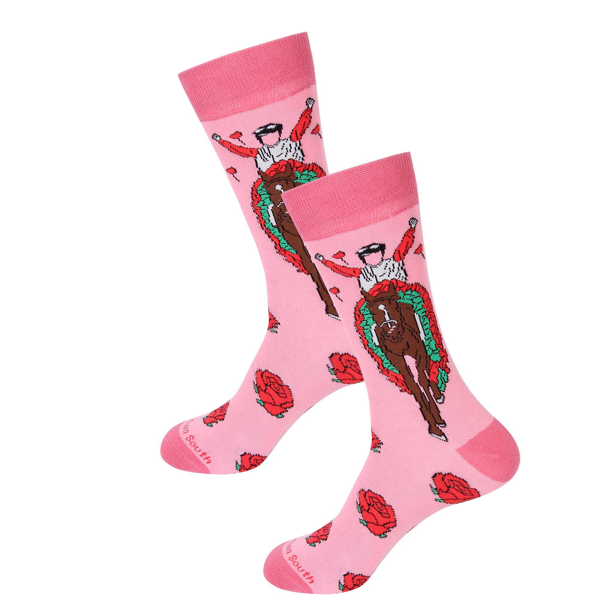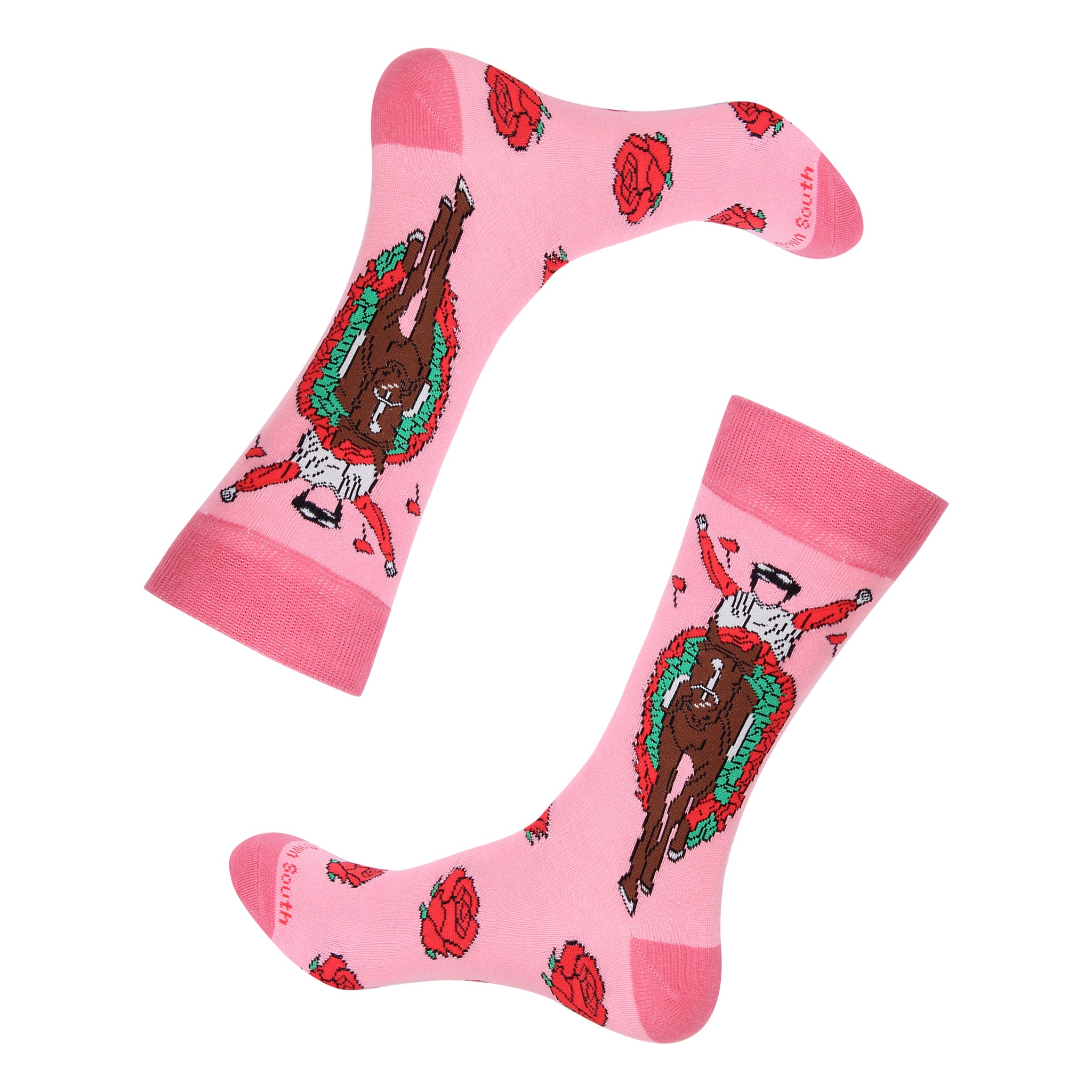 From race day parties to everyday wear, these socks deliver a stylish tribute to the most iconic symbol in horse racing, the blanket of roses, paired with the power and motion of a winning jockey. They’re a must-have for anyone who lives for Derby season, Southern charm, and fashion that turns heads.