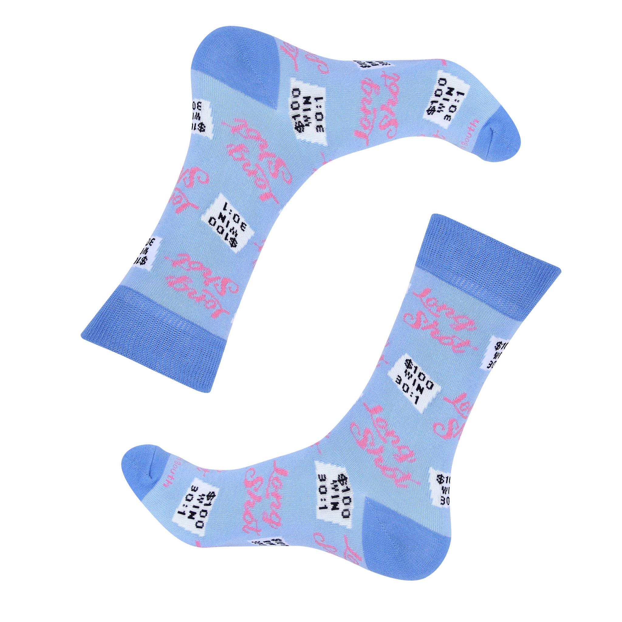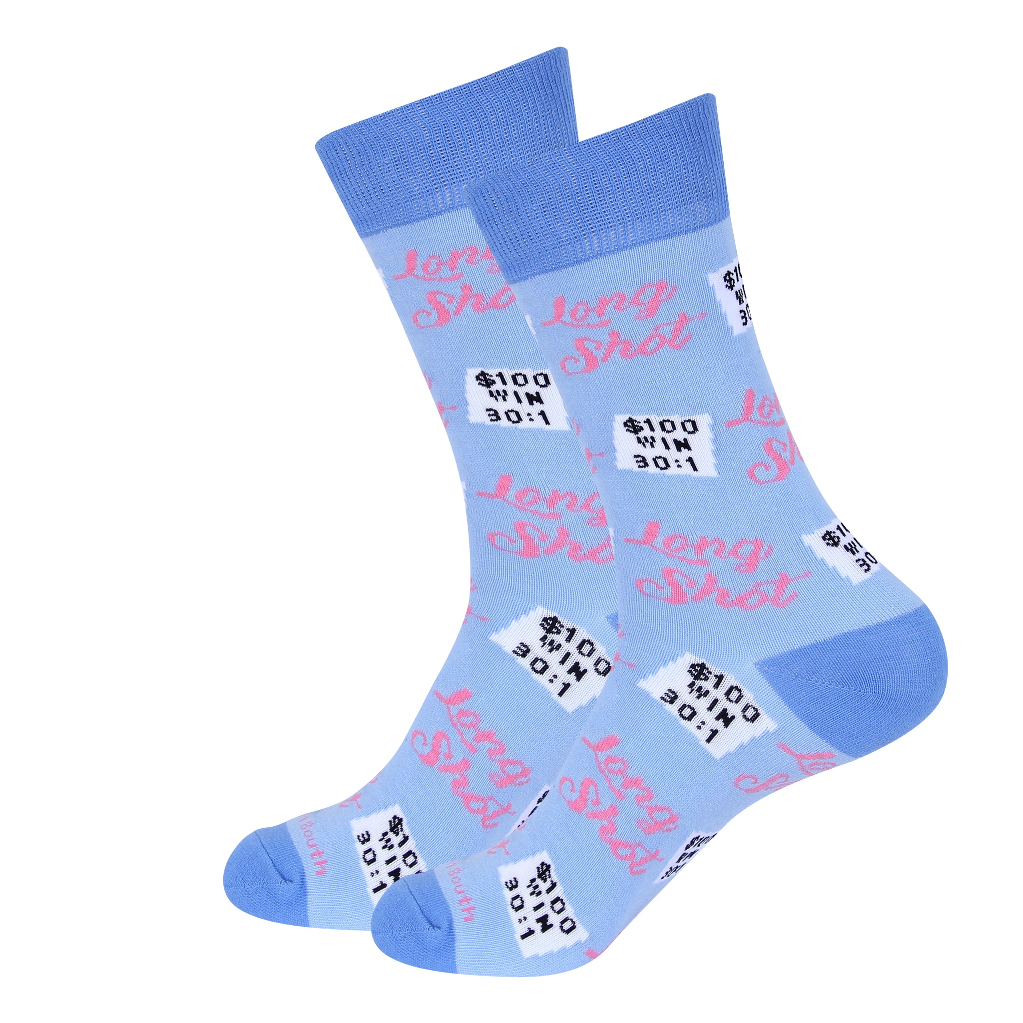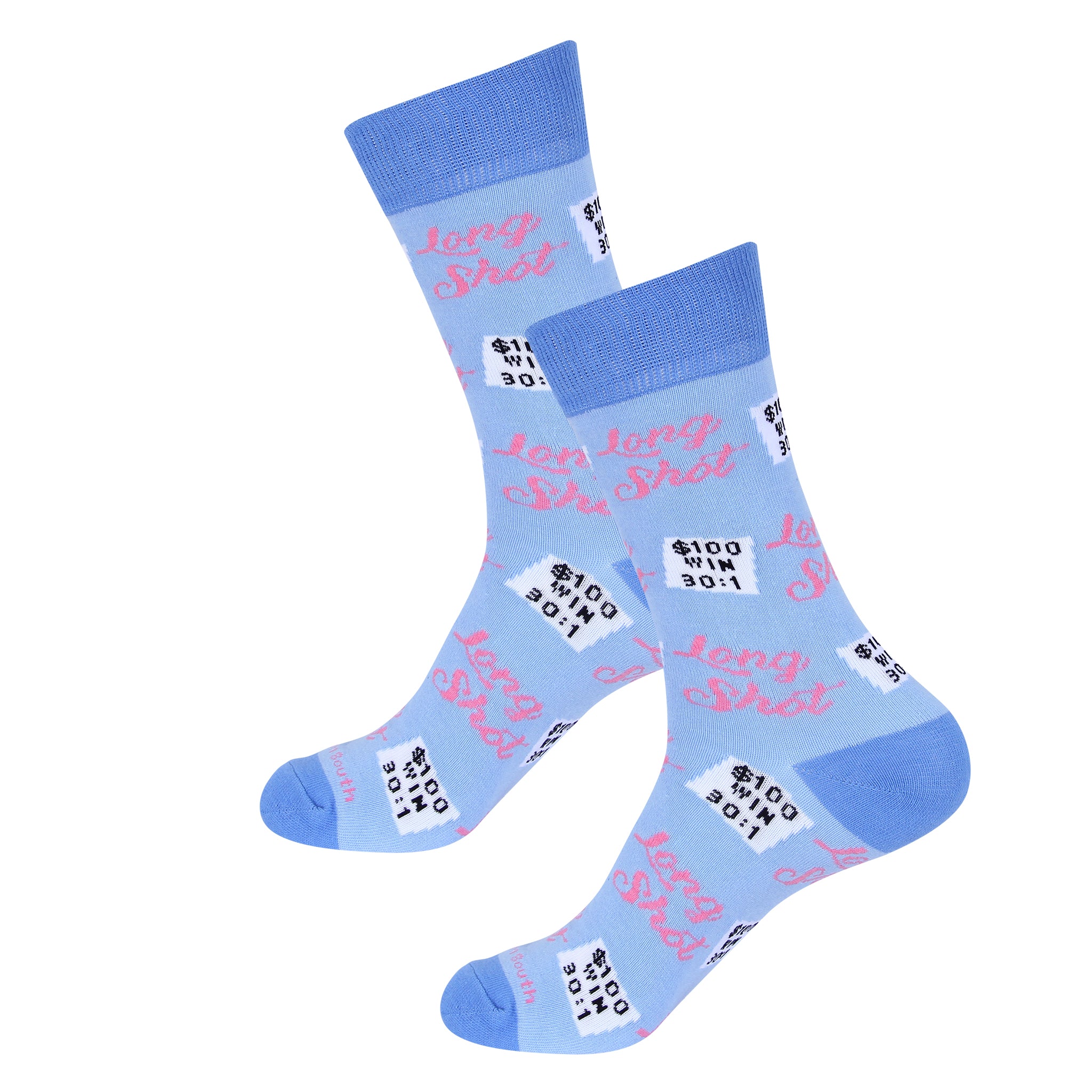 Step up your sock game with Long Shot Horse Racing Socks! These playful socks bring the thrill of the racetrack right to your feet, featuring bold designs inspired by horse racing. Perfect for adding a dash of fun to your outfit, they keep you comfortable whether you're cheering from the stands or just horsing around. Get ready to race through your day in style and comfort!