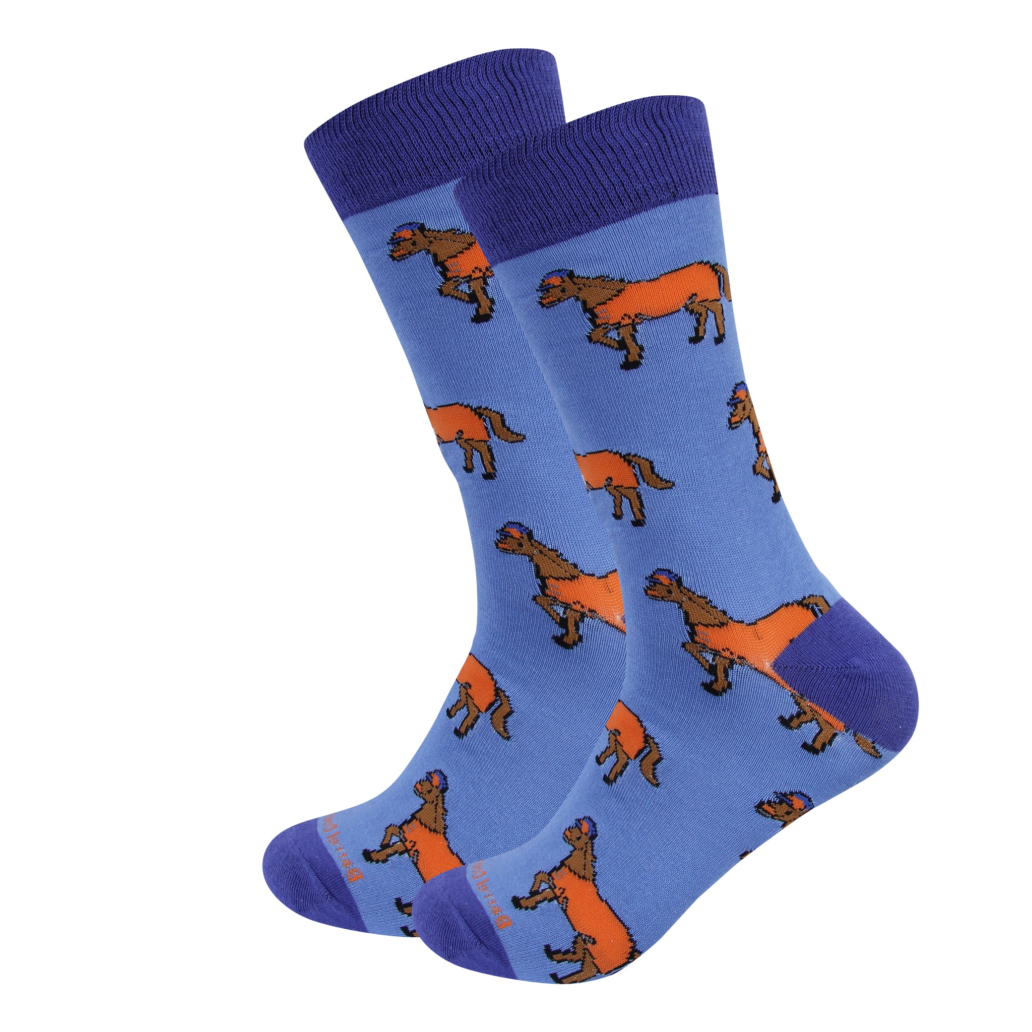Whether you're dressing for a derby day party, searching for the perfect gift for a horse racing enthusiast, or just want to add a pop of color and personality to your outfit, these novelty socks are a sure bet. The detailed design and rich color palette make them a standout choice for both casual and dressed-up occasions.
