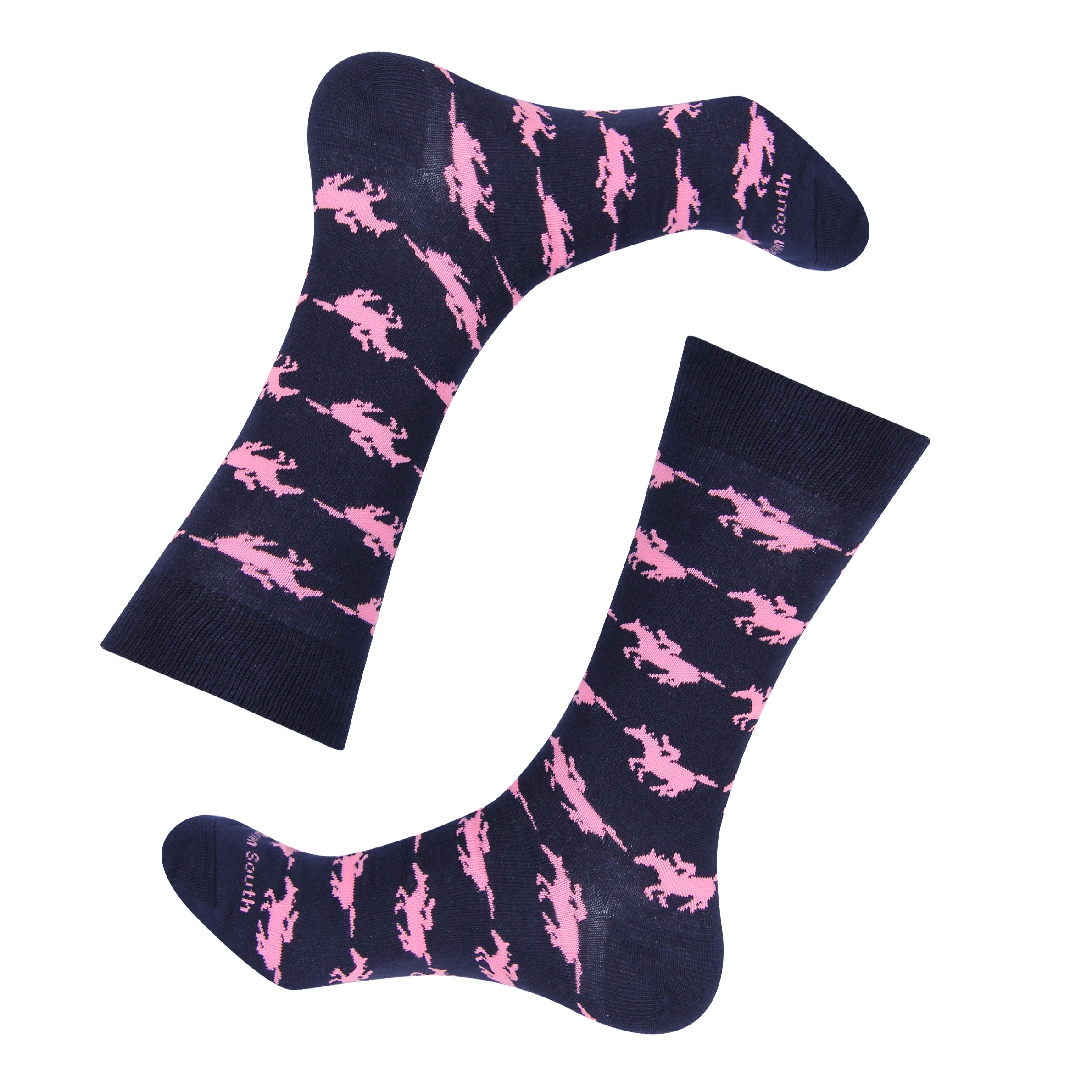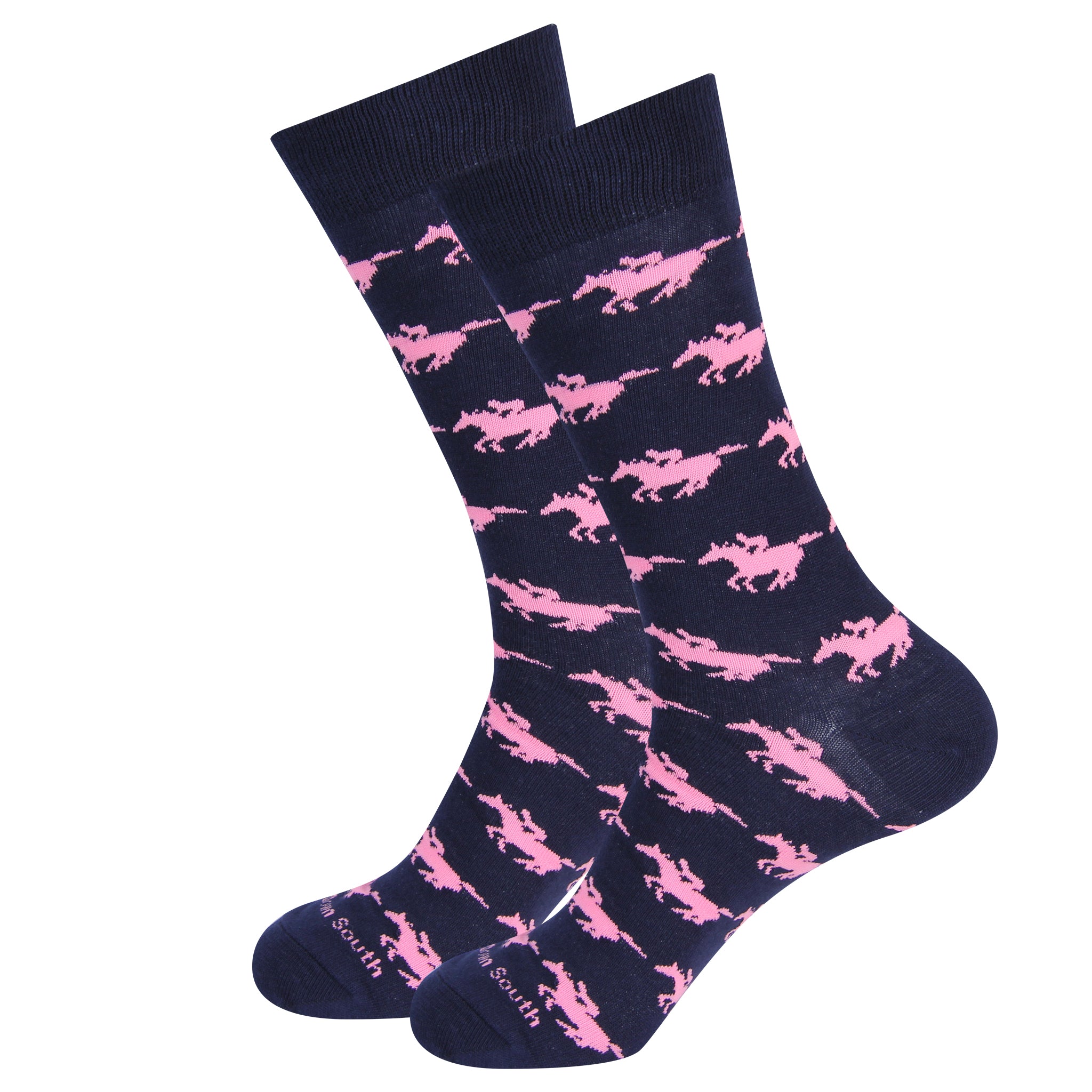 Step into fun with these Pink Race Horse Socks! Featuring a lively racehorse design in vibrant pink, they add a playful pop to any outfit. Made for comfort and style, these socks are perfect for horse lovers who want to show off their spirited side with every step.