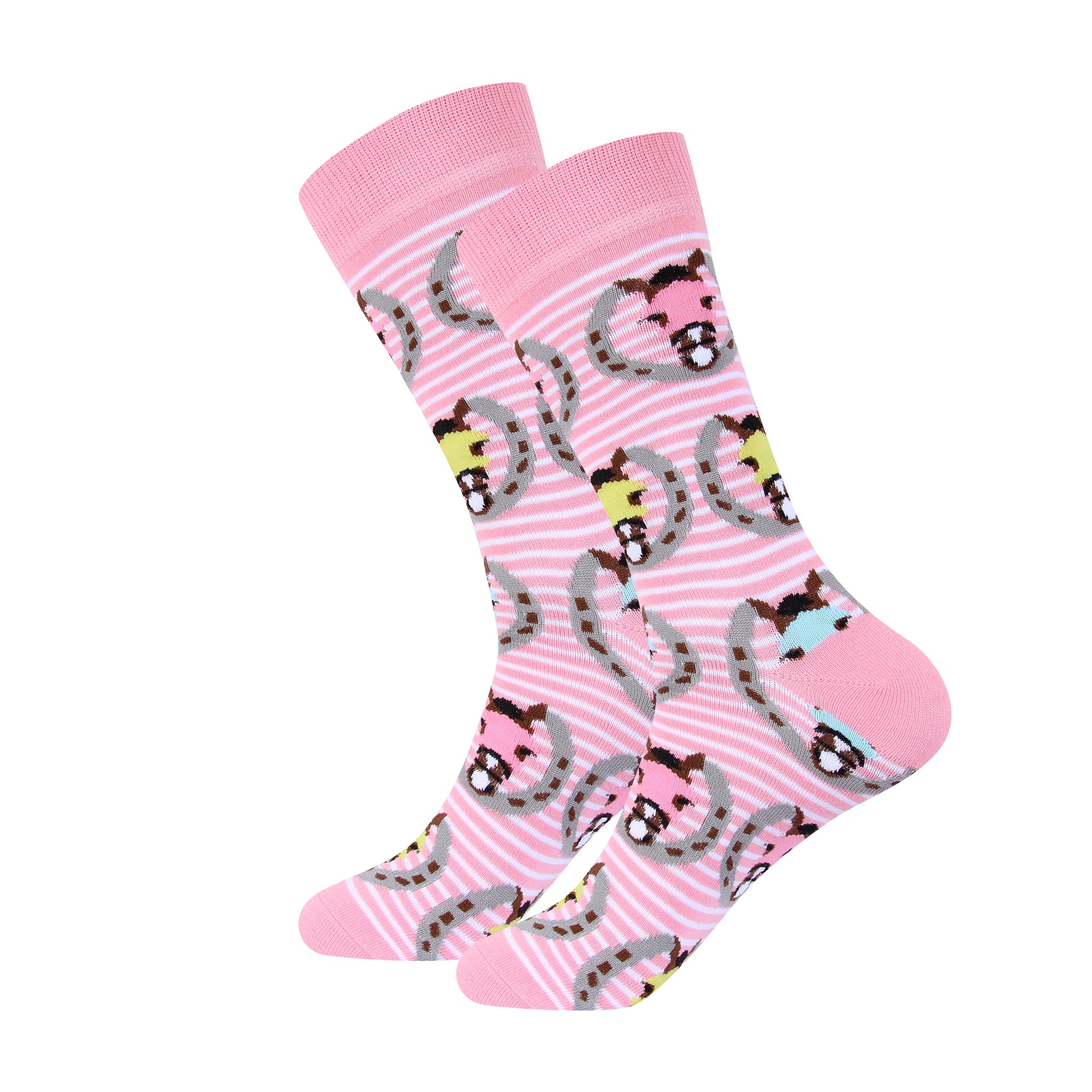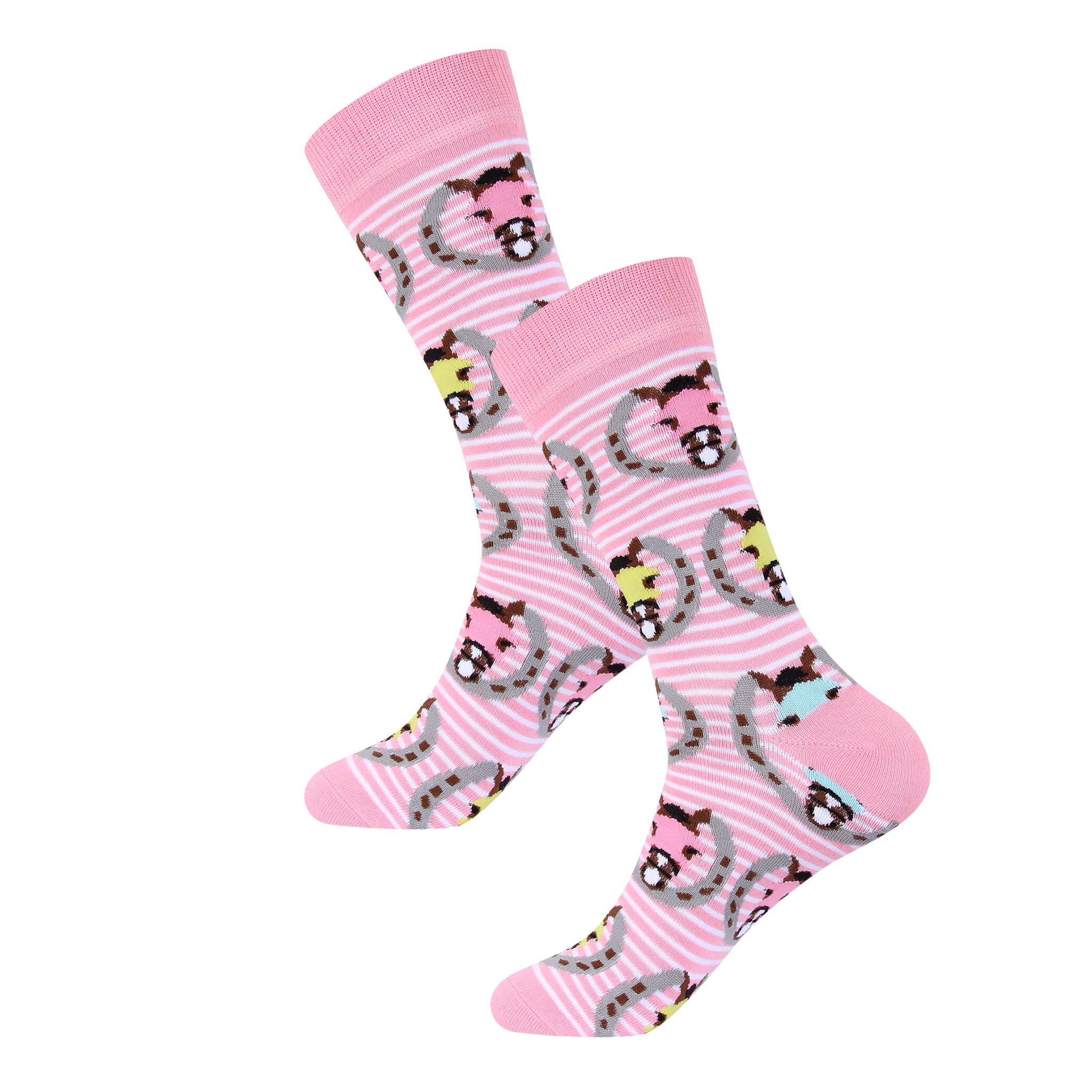 Step into equestrian elegance with our Pink Stripe Horse Blinder in Horseshoes Socks. The striking design features a vibrant pink stripe pattern and intricately detailed horseshoe and blinder imagery, which pays homage to the beauty and grace of the equestrian world.