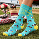 The eye-catching design of the They're Neck and Neck Sock captures the thrilling moment of horses racing neck and neck, adding a touch of excitement to your sock collection. Whether you're attending Derby parties, cheering on your favorite horse, or simply expressing your love for the races, these socks are the perfect accessory to make a statement.