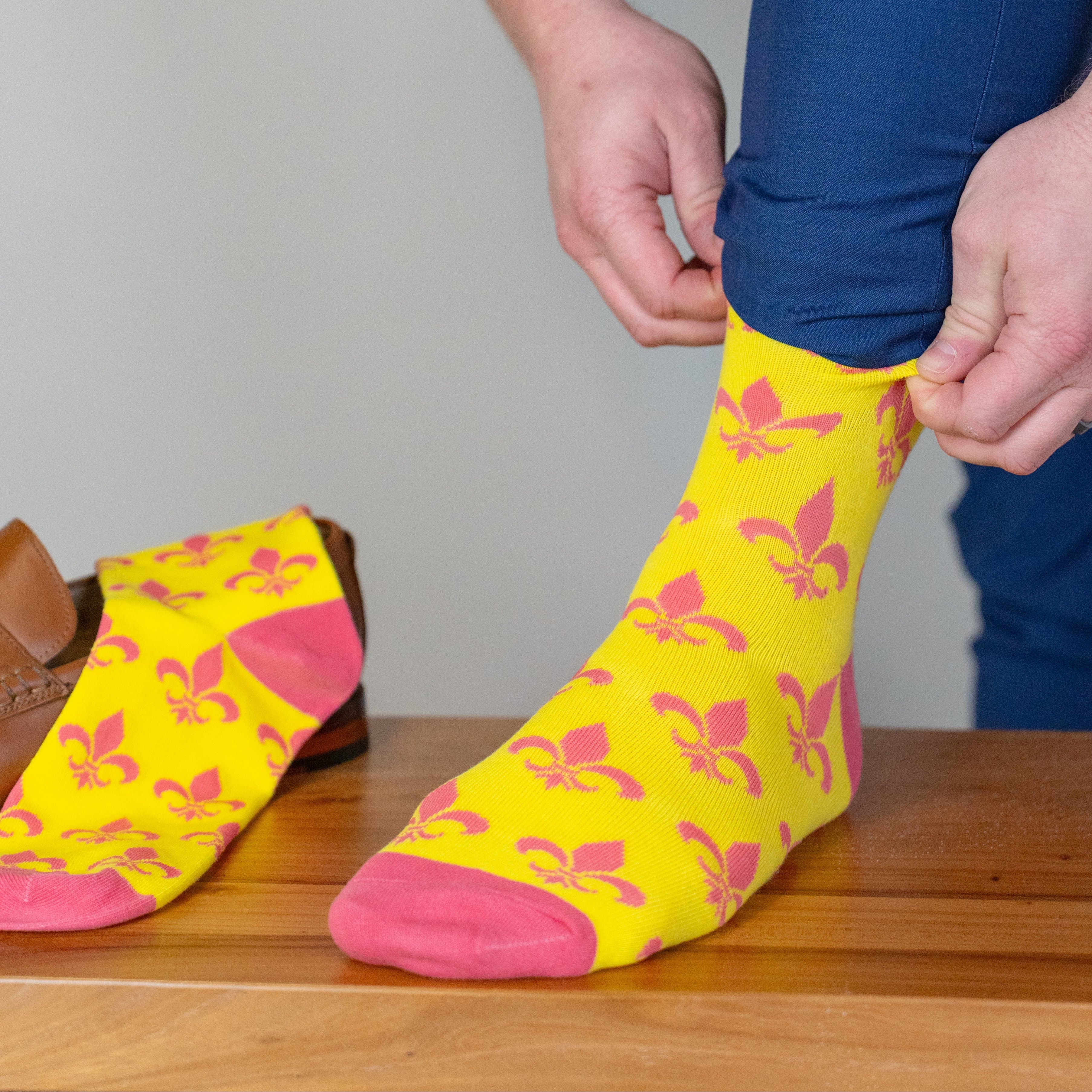 Step into a splash of sunshine with these Yellow Fleur De Lis Socks! Bright and bold, they add a cheerful twist to any outfit while keeping your feet cozy. Perfect for those who love a little flair with their comfort, these socks bring a playful pop of color and classic charm to your day.
