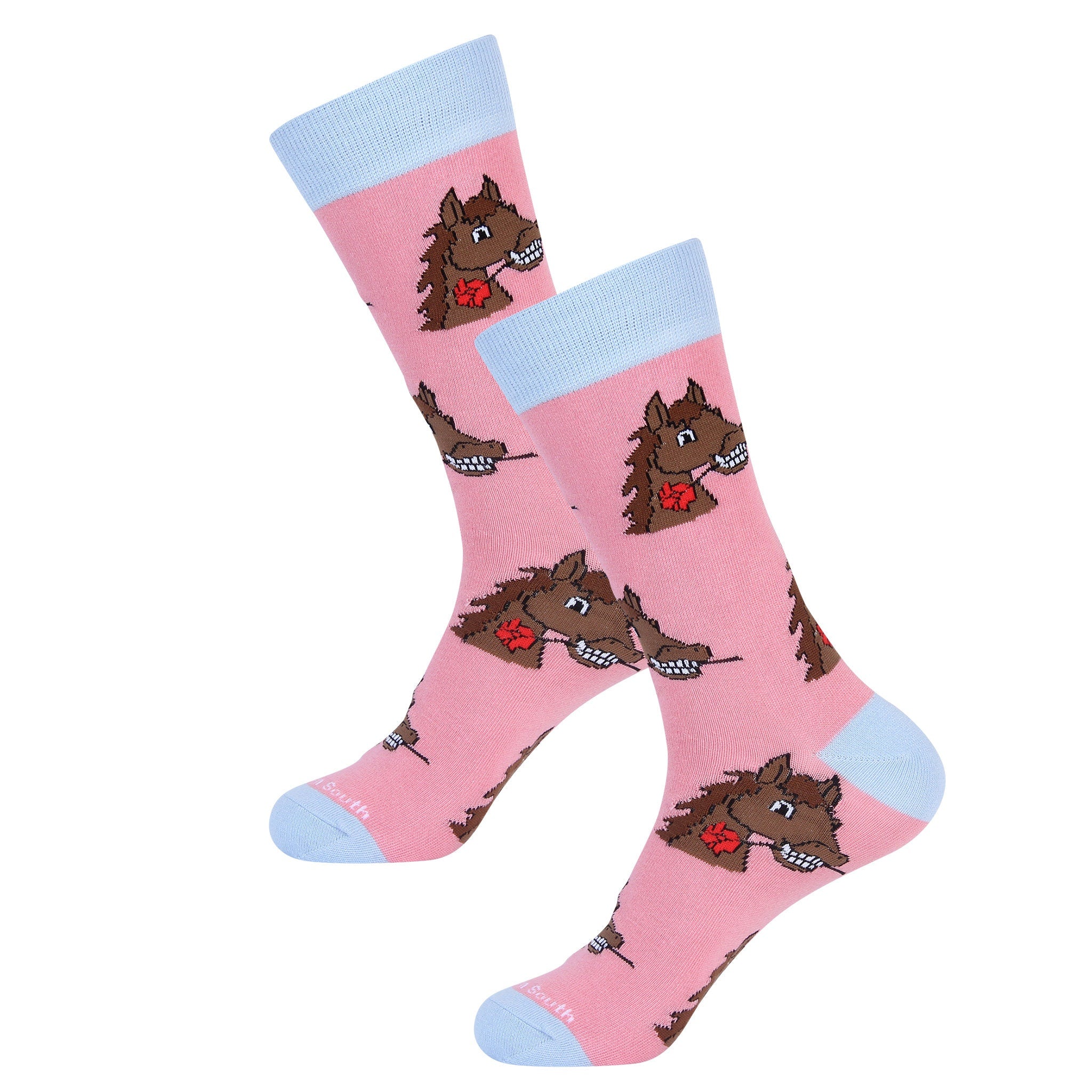 The captivating Pink Horse Head Biting Rose Sock design captures the dynamic spirit of horse racing, making these socks a standout choice for Derby enthusiasts. Whether you're attending the races, hosting Derby parties, or searching for a unique gift, these socks are the ideal way to express your passion for the thrill of the track.