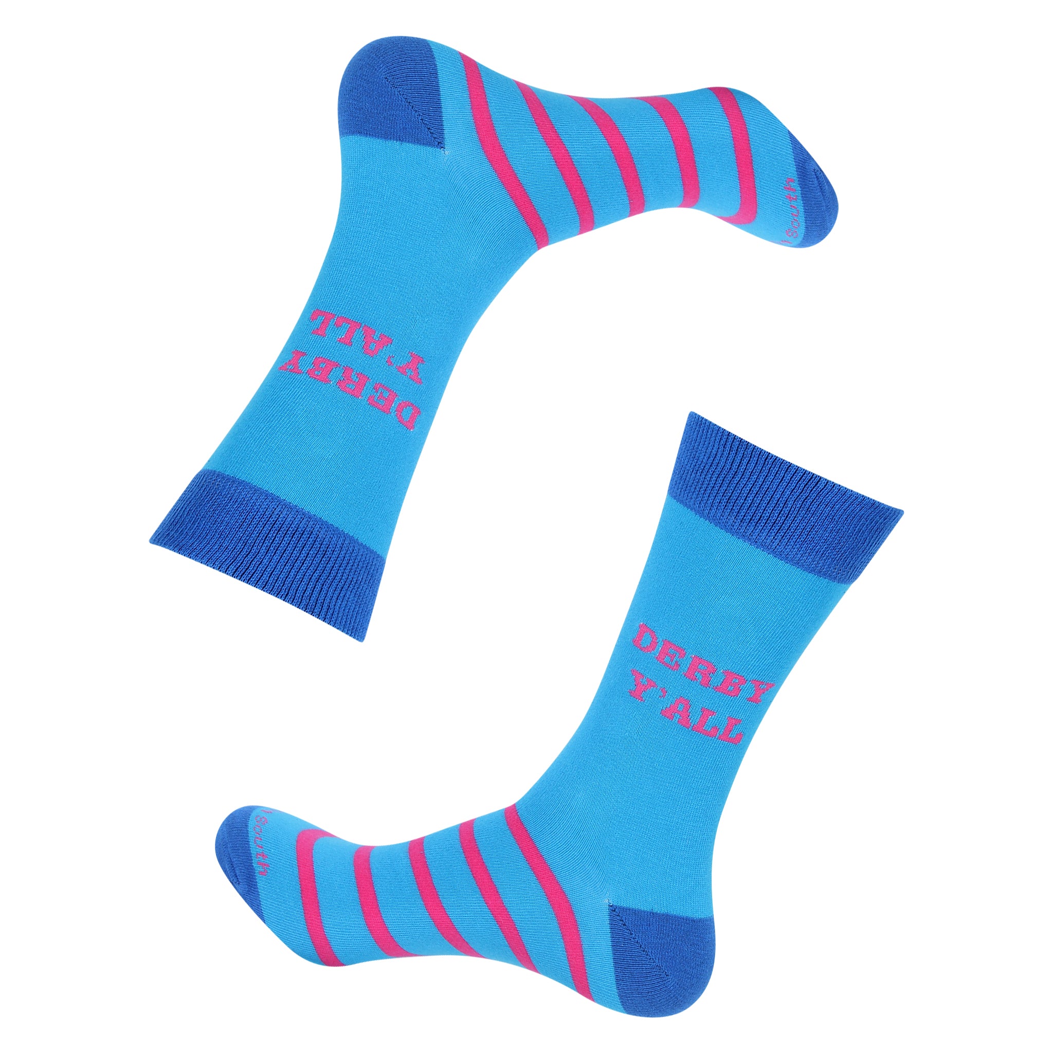 Get into the spirit of the Kentucky Derby with our Derby Y'all Socks. Whether you're a seasoned race-goer, a fan of equestrian events, or simply want to capture the excitement of derby day, these socks offer a spirited and stylish way to celebrate the iconic event. Featuring the playful phrase "Derby Y'all" alongside charming equestrian motifs, these socks exude the energy and charm of the Kentucky Derby, infusing your wardrobe with a touch of Southern hospitality and equestrian flair.