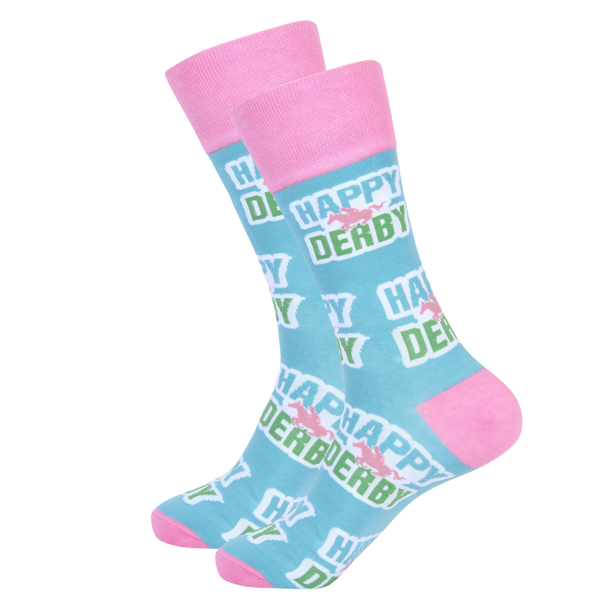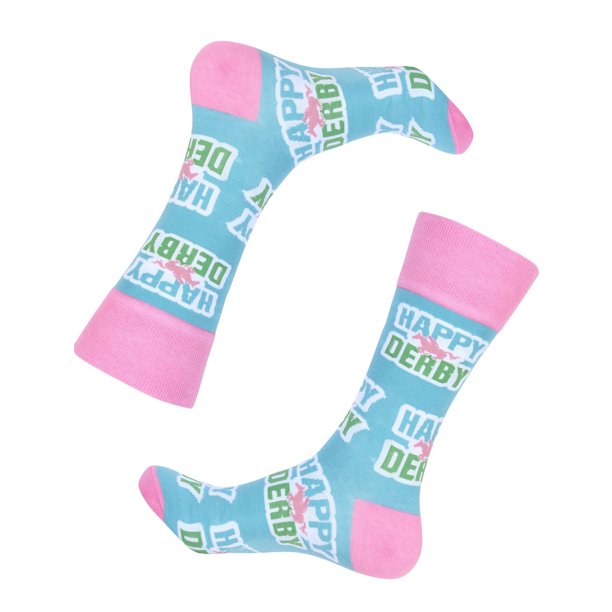 Get race-day ready from head to toe with our Happy Derby Socks, featuring a cheerful repeating pattern of the phrase “Happy Derby” against a classic blue background. Perfect for Kentucky Derby parties, race track events, or just showing off your love for the most exciting two minutes in sports, these socks add a fun, festive flair to any outfit.