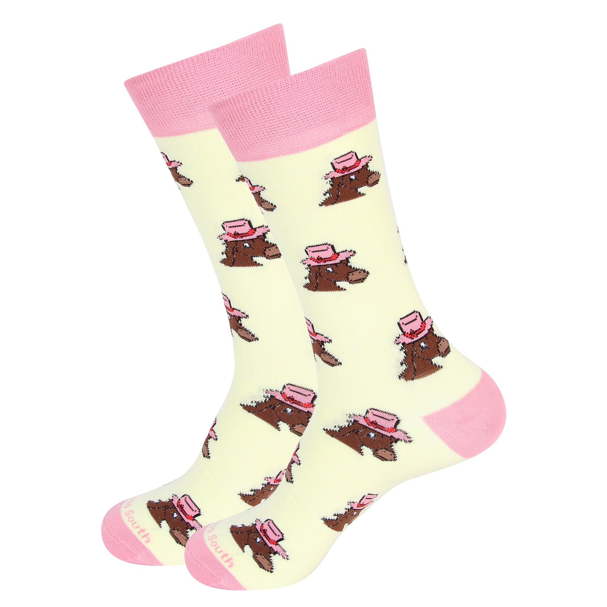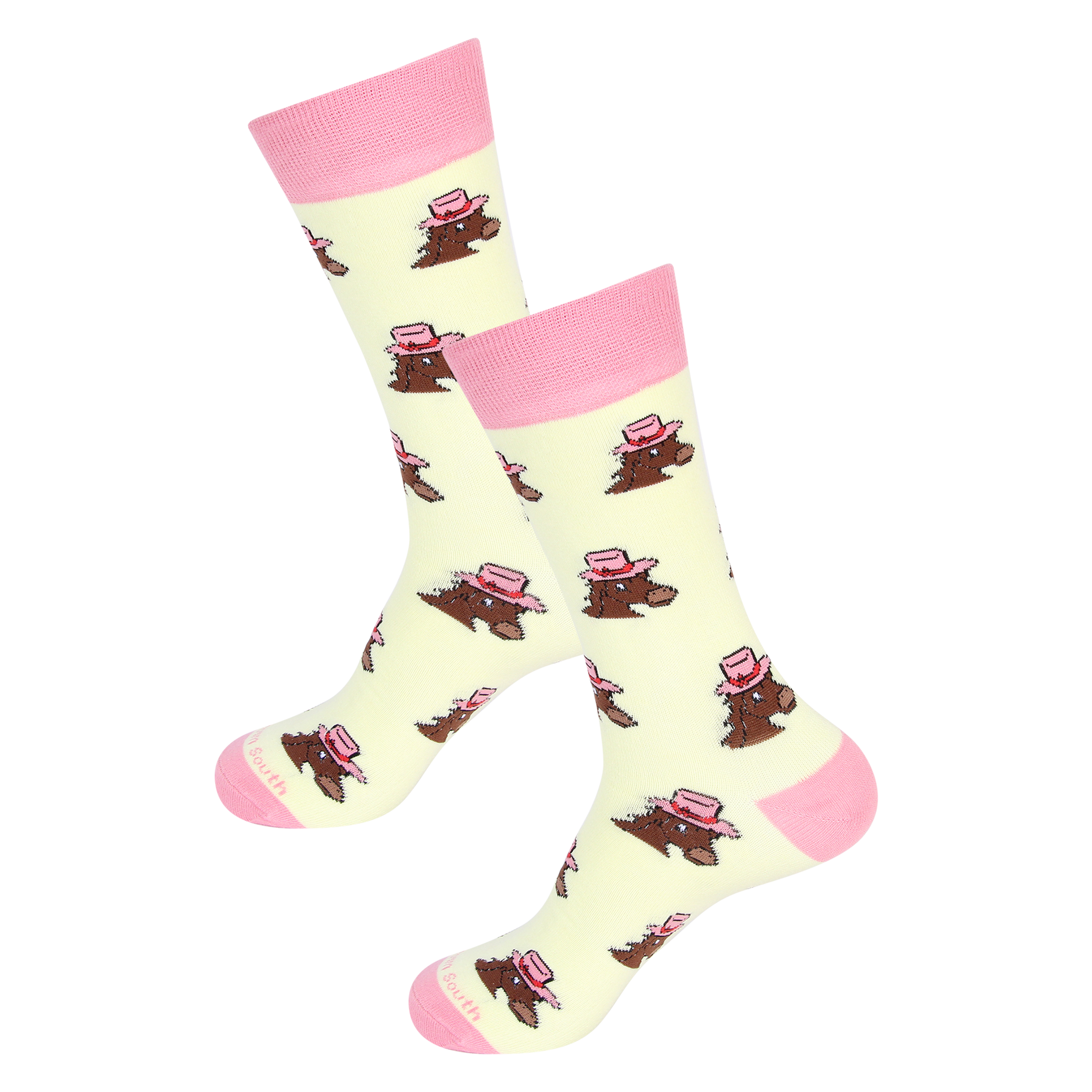 Turn heads and win hearts with these charming Horse in Hat Socks, featuring a whimsical repeating pattern of elegant horses in bright pink hats against a soft pastel yellow background. Designed for lovers of Southern fashion, Kentucky Derby style, and playful equestrian flair, these socks are the perfect way to celebrate the spirit of the races—right down to your toes.