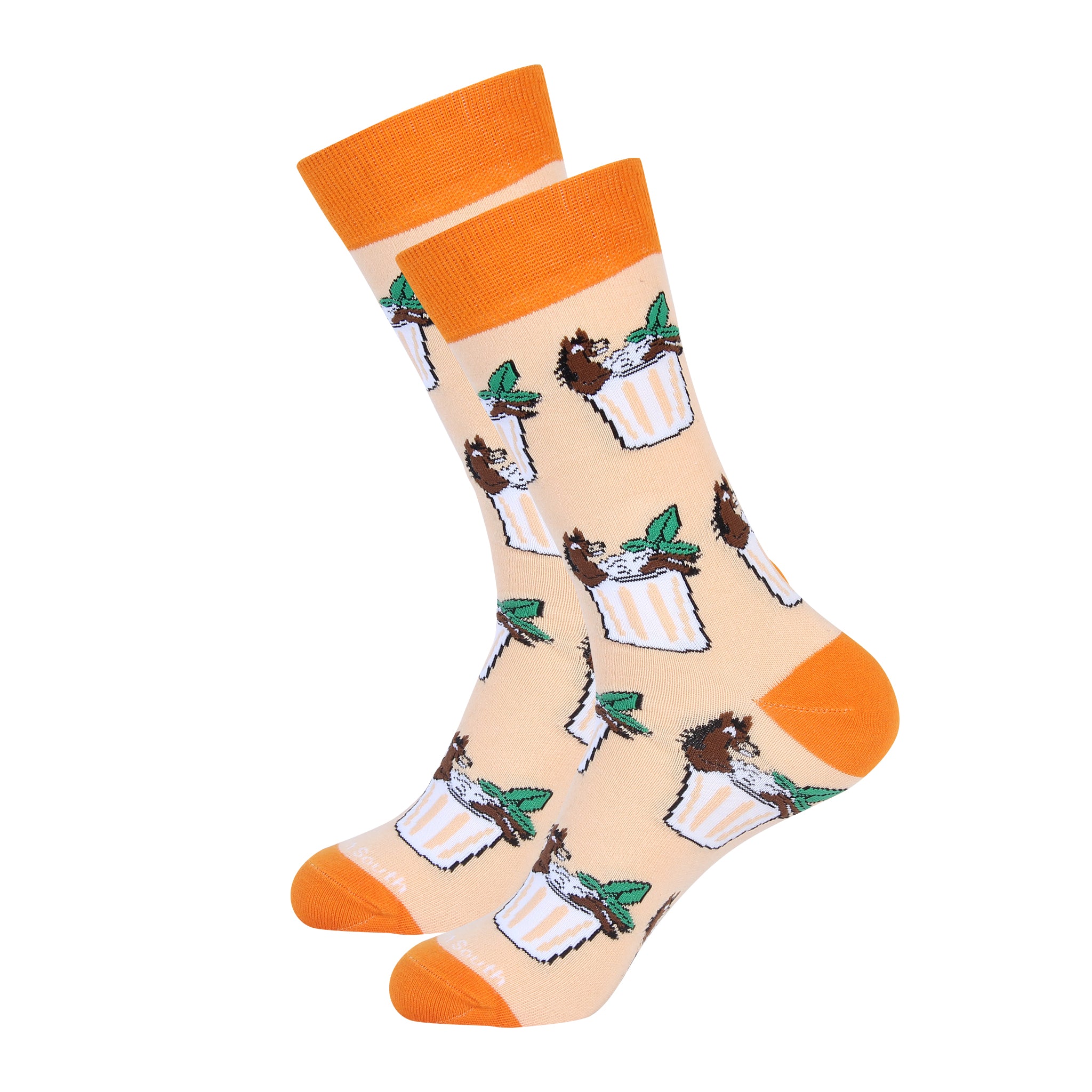 Add a whimsical twist to your race day look with our Horse Sitting in Mint Julep Socks, featuring a fun repeating pattern of horses lounging inside oversized mint julep glasses against a vibrant orange background. Perfect for Kentucky Derby fans, bourbon lovers, and anyone who appreciates quirky, Southern-inspired fashion, these socks bring a splash of personality and humor to every step.