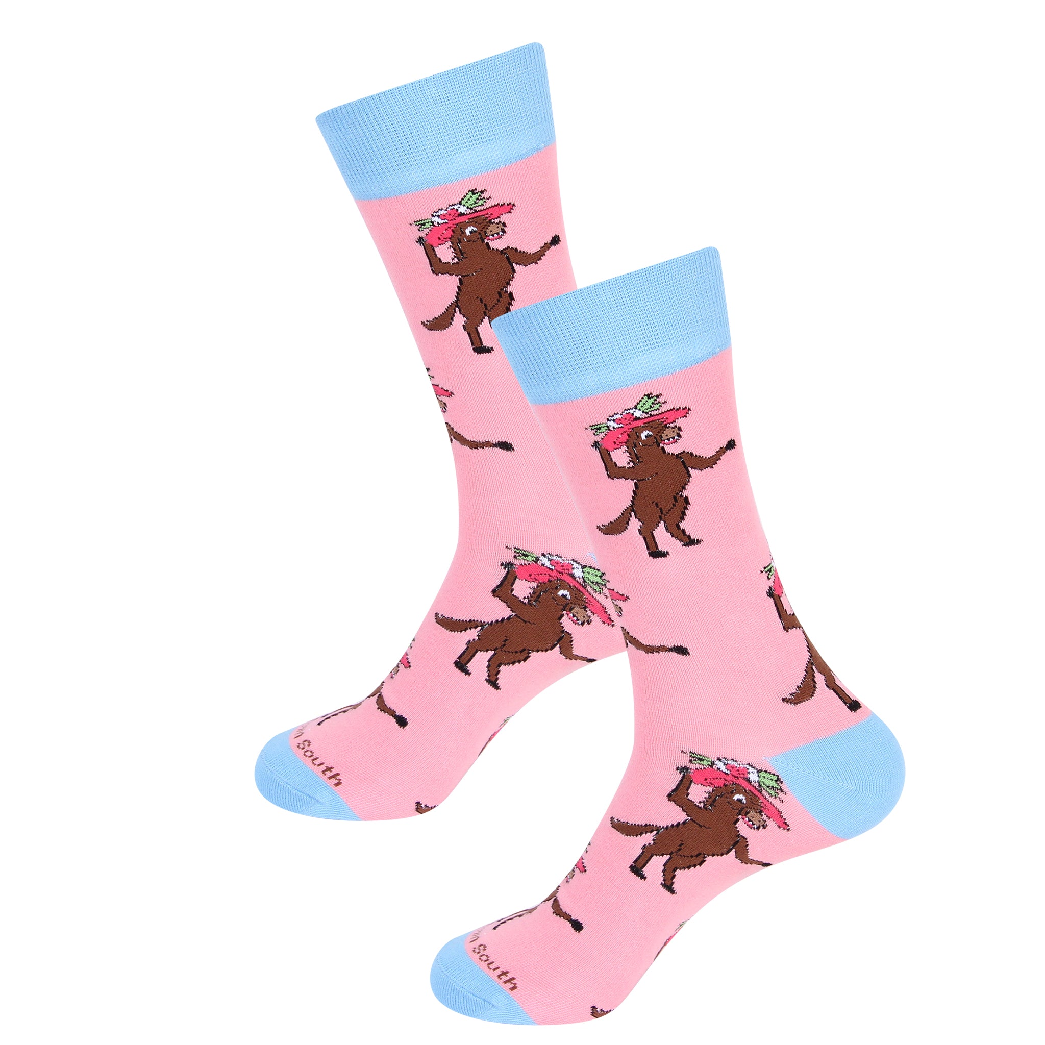 Whether you're heading to the track, throwing a Derby Day party, or simply love horses with personality, these socks capture the spirit of race day in every step. The vibrant design blends equestrian elegance with bold color and a sense of humor, perfect for showing off your love for Southern traditions, horse racing, and standout accessories.