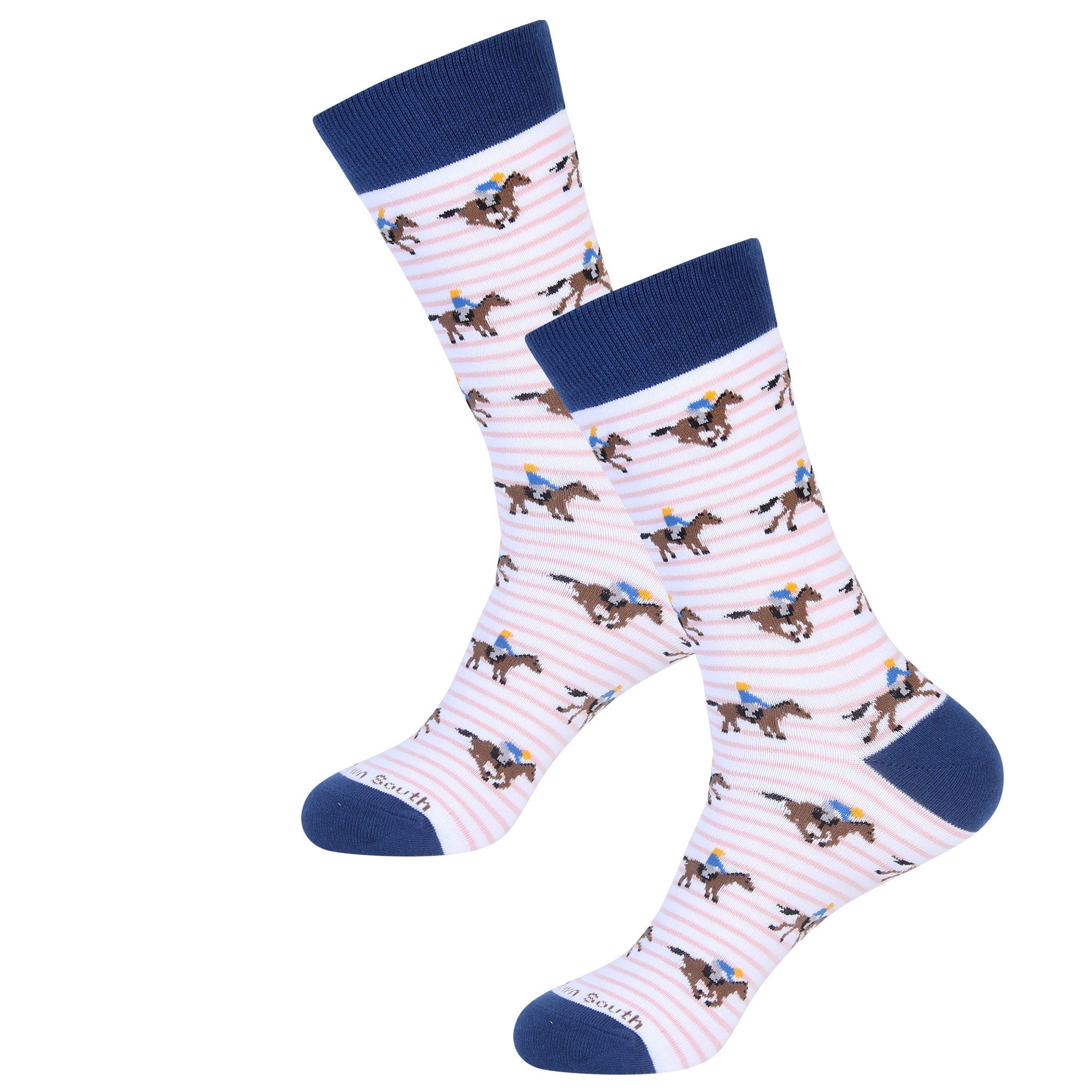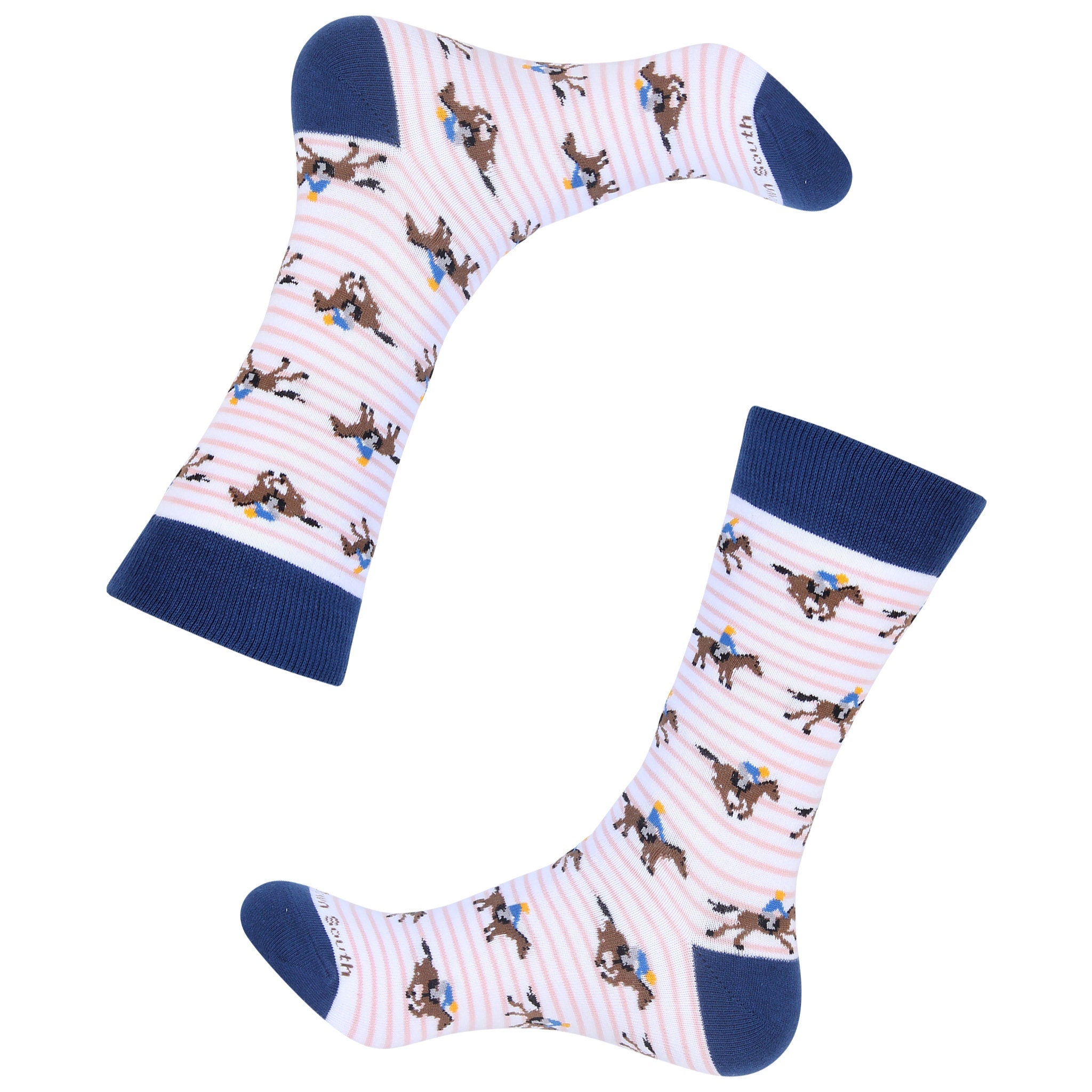 Whether you're headed to Churchill Downs, watching the Kentucky Derby, or just want to show off your love for the sport of kings, these horse racing novelty socks are a guaranteed win.
