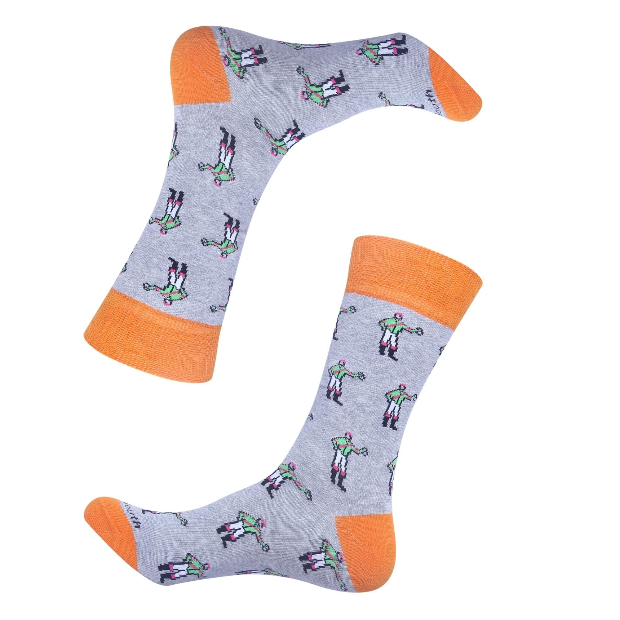 Gallop into style with our Standing Jockey Socks – the perfect blend of comfort and equestrian flair for the ultimate celebration! Expertly crafted from a premium blend of 80% cotton, 17% polyester, and 3% spandex, these socks offer a soft, breathable, and stretchy fit for the ultimate comfort experience. The playful Derby Horse Jockey design, featuring jockeys in action, adds a touch of humor and Kentucky pride, making them an ideal accessory for Derby enthusiasts.