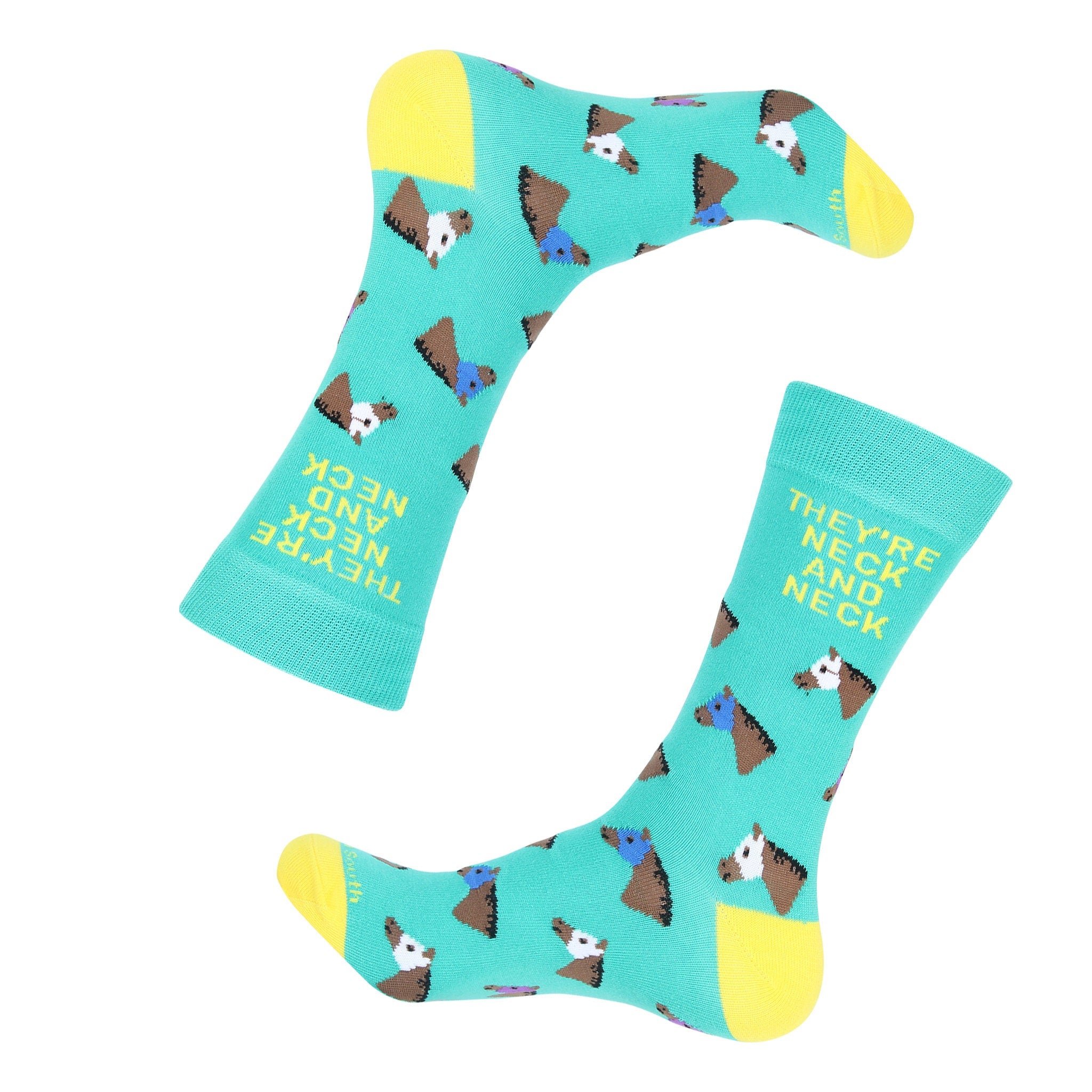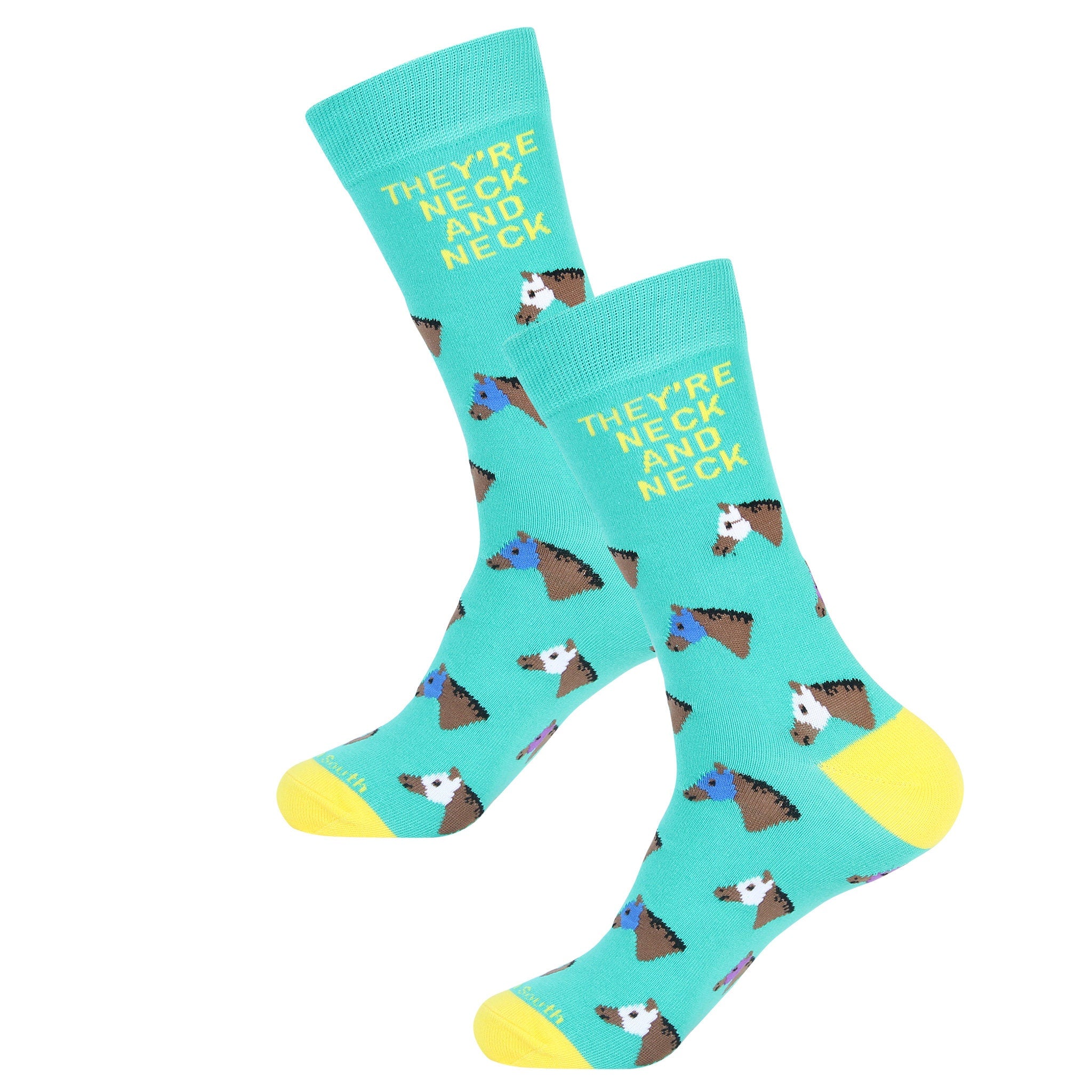 The eye-catching design of the They're Neck and Neck Sock captures the thrilling moment of horses racing neck and neck, adding a touch of excitement to your sock collection. Whether you're attending Derby parties, cheering on your favorite horse, or simply expressing your love for the races, these socks are the perfect accessory to make a statement.