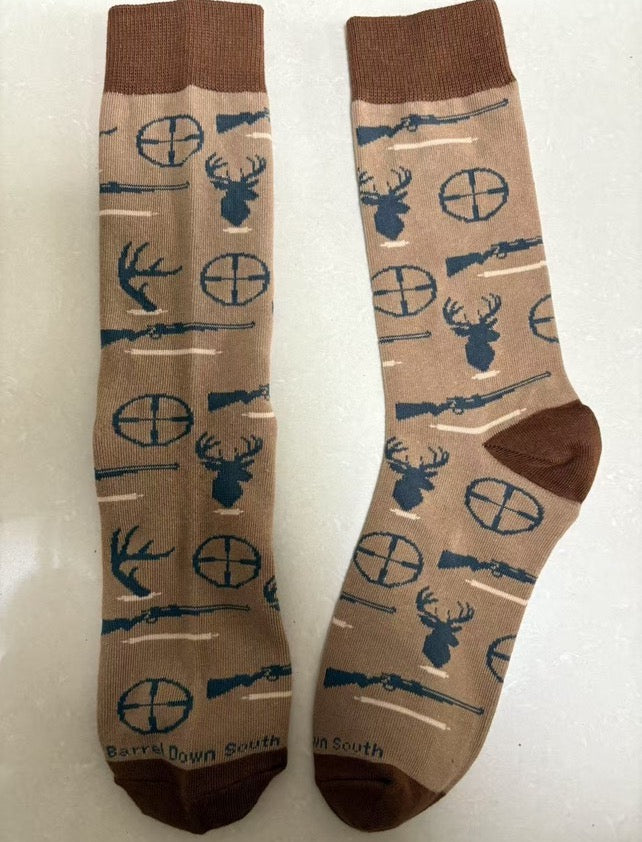 Show off your hunting pride with our Brown Deer Hunting Socks. Featuring an all-over design of deer silhouettes, antlers, rifles, and target scopes, these socks are made for outdoorsmen who live for deer season. Crafted from a soft cotton, polyester, and spandex blend, they’re breathable, stretchy, and durable enough for all-day comfort. With a unisex fit and rugged brown tones, they’re the perfect gift for hunters and outdoors enthusiasts alike.